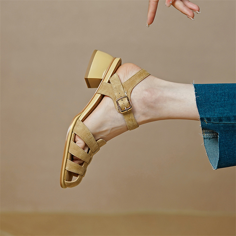 Are you looking for a stylish and comfortable summer sandal? Look no further than the Ada Women's Summer Suede Sandals! from Footens Shoes. The gladiator style features pigskin leather lining. a square heel. and a narrow band design that offers quality and comfort. The TPR outsole ensures durability. making them perfect for casual occasions. Available in apricot and green. (Fits true to size.)