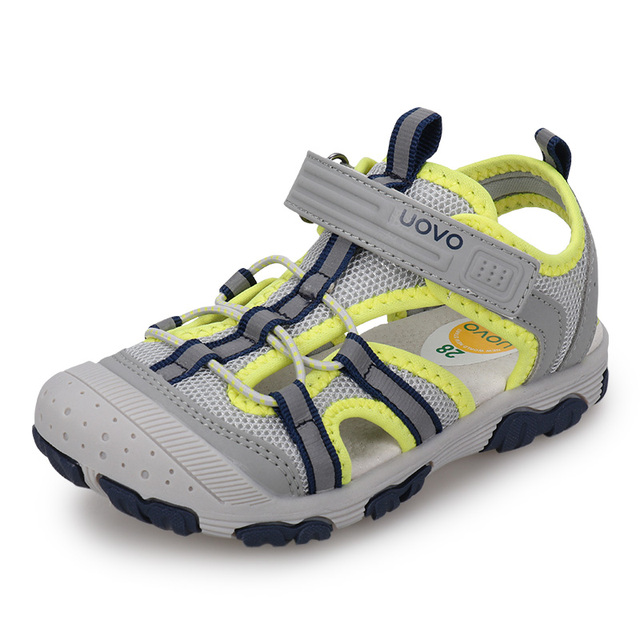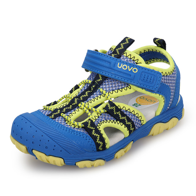 There's nothing more comfortable than this stylish Adan sandal for boys. The sturdy construction means no breaking and long-lasting wear. The hook & loop closure ensures a secure fit for your little guy. The sturdy traction outsole provides a solid grip so he can play in the sand for hours.