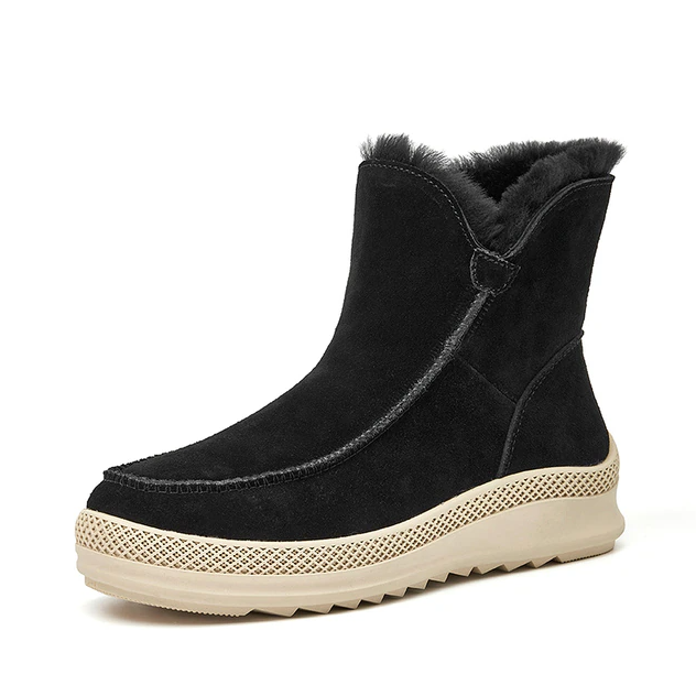 The Alicia Women's Boots from Footens Shoes are perfect for the winter and autumn seasons. featuring a solid pattern and round-toe design. With a luxurious wool lining and plush insole. these boots ensure comfortable. all-day wear. The ankle-high design is complemented by 1.5heels and slip-on closures for an easy fit. With an outsole made of durable rubber and a lightweight 6 oz design. these boots make transition through any terrain a breeze.