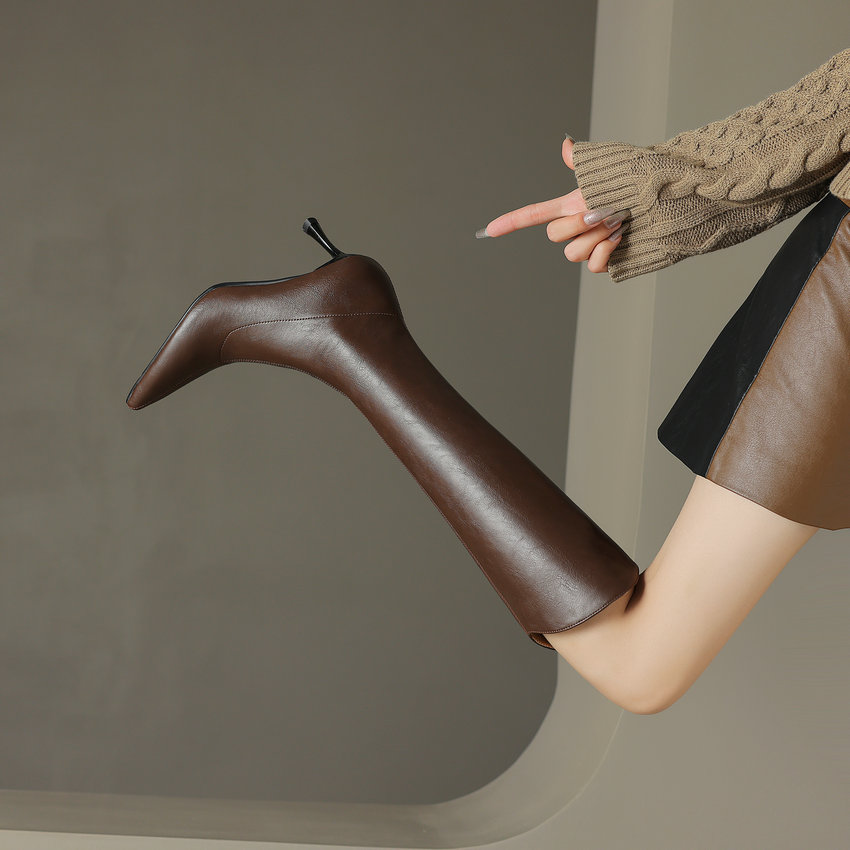 Be ready to conquer the colder months in style with Footens Shoes Anny Women's Genuine Leather Knee High Boots. Made with high-quality cow leather. these boots offer comfort and durability. The thin heel and pointed toe add a touch of sophistication. while the rubber outsole provides stability. Perfect for the office or a night out. these boots are a must-have for any fashion-forward woman.