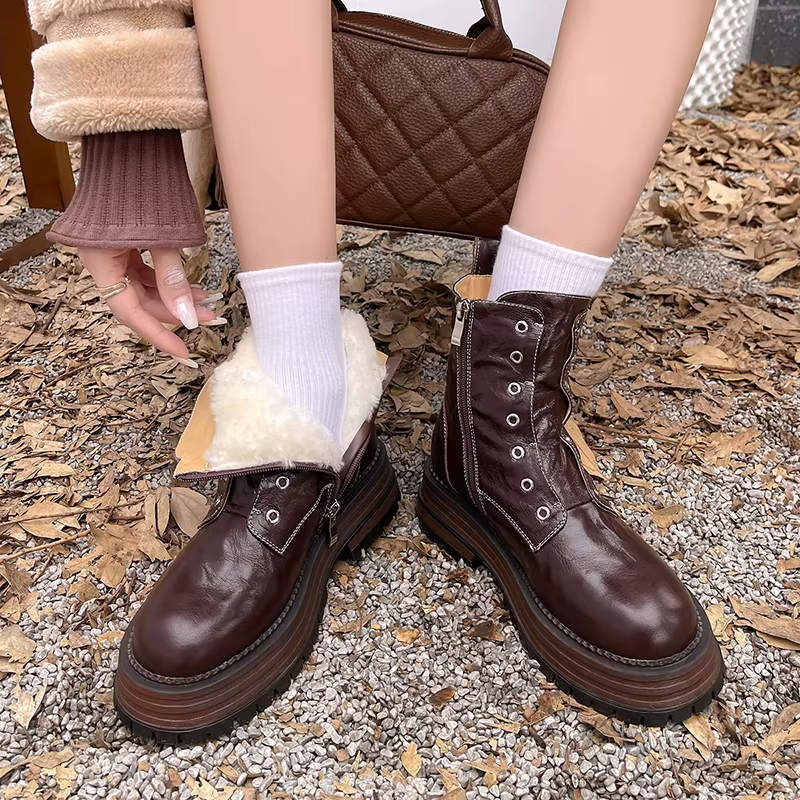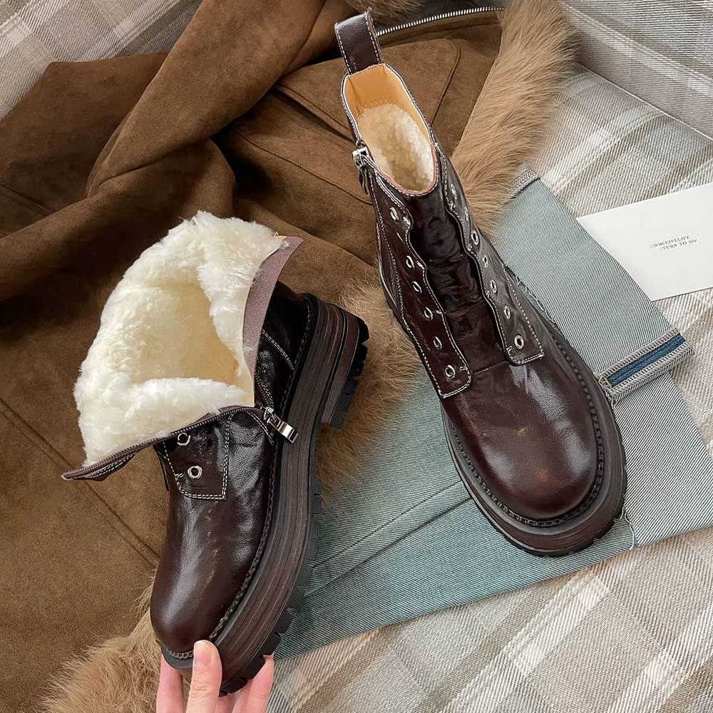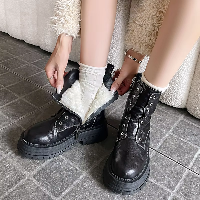 Expertly crafted with genuine sheepskin and wool lining. the Footens Shoes Ariana Women's Winter Ankle Boots are perfect for winter and autumn. The rubber outsole and square heel provide stability and comfort. while the zip closure and round toe make them easy to put on. and a true-to-size fit ensures a perfect fit.
