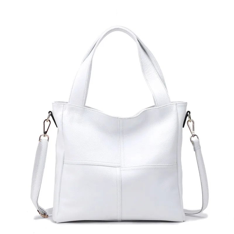 This Army Women's Handbag from Footens Bags is made of high-quality genuine leather and features two straps for shoulder and crossbody use. It boasts a distinctive bucket shape and solid pattern. making it versatile enough for almost any occasion. The interior is equipped with several pockets to keep your belongings safe and organized. and the zipper closure ensures your items stay secure.