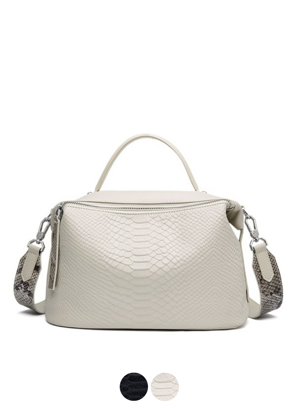 The Polanco Women's Handbag from Footens Bags is an exquisite accessory for any occasion. Crafted from the finest cow leather and boasting a stylish serpentine pattern. this bag makes a statement wherever you go. Available in both ivory and black and offering both shoulder and handbag styles. the Polanco is tailored for versatility and a luxurious feel. It features an interior compartment. zipper pocket. and slot pocket for safe storage. Quality guaranteed.