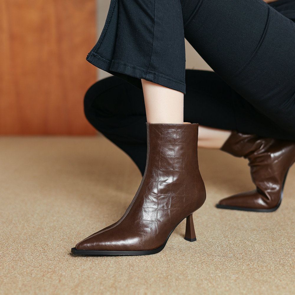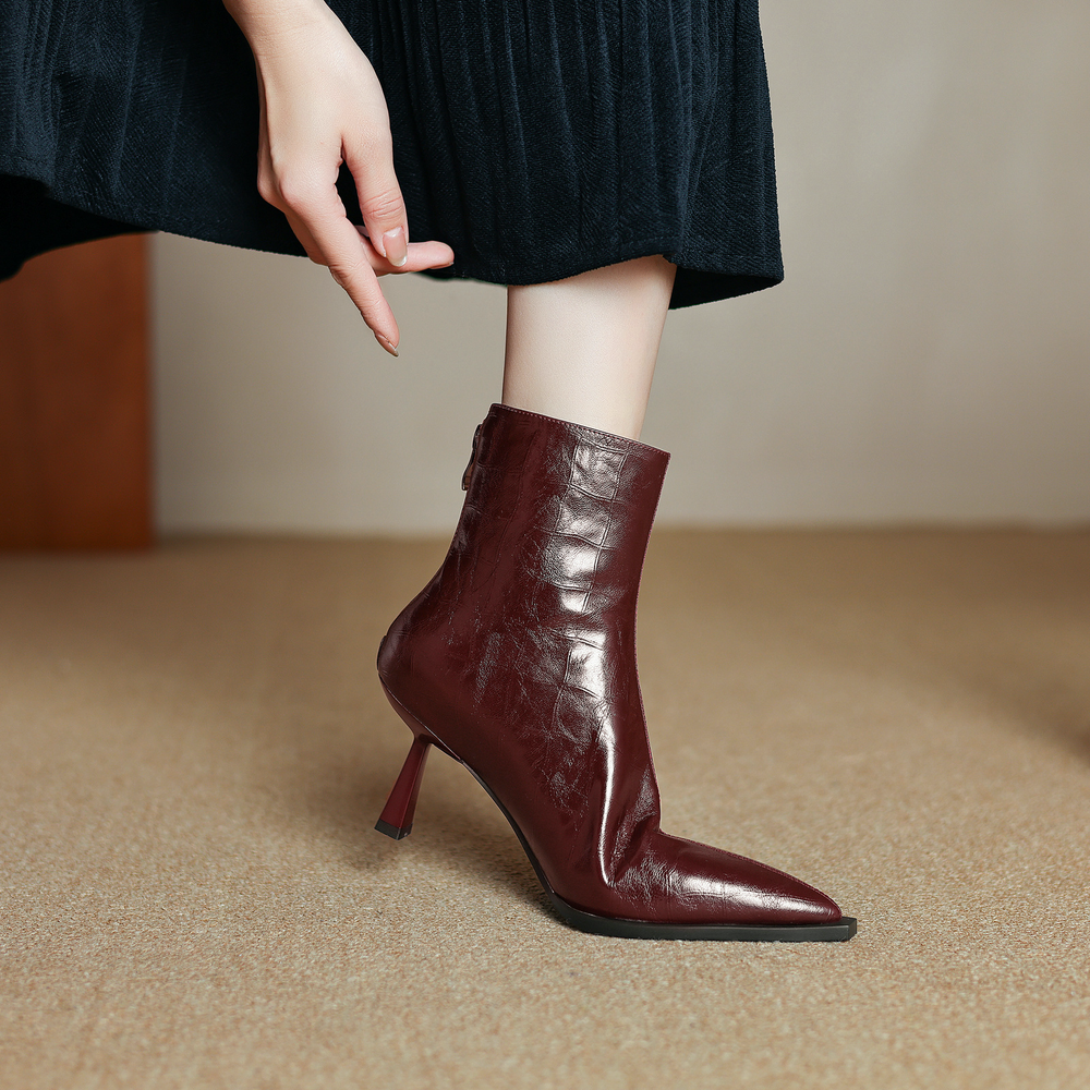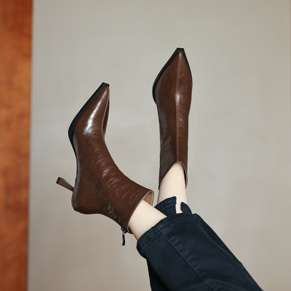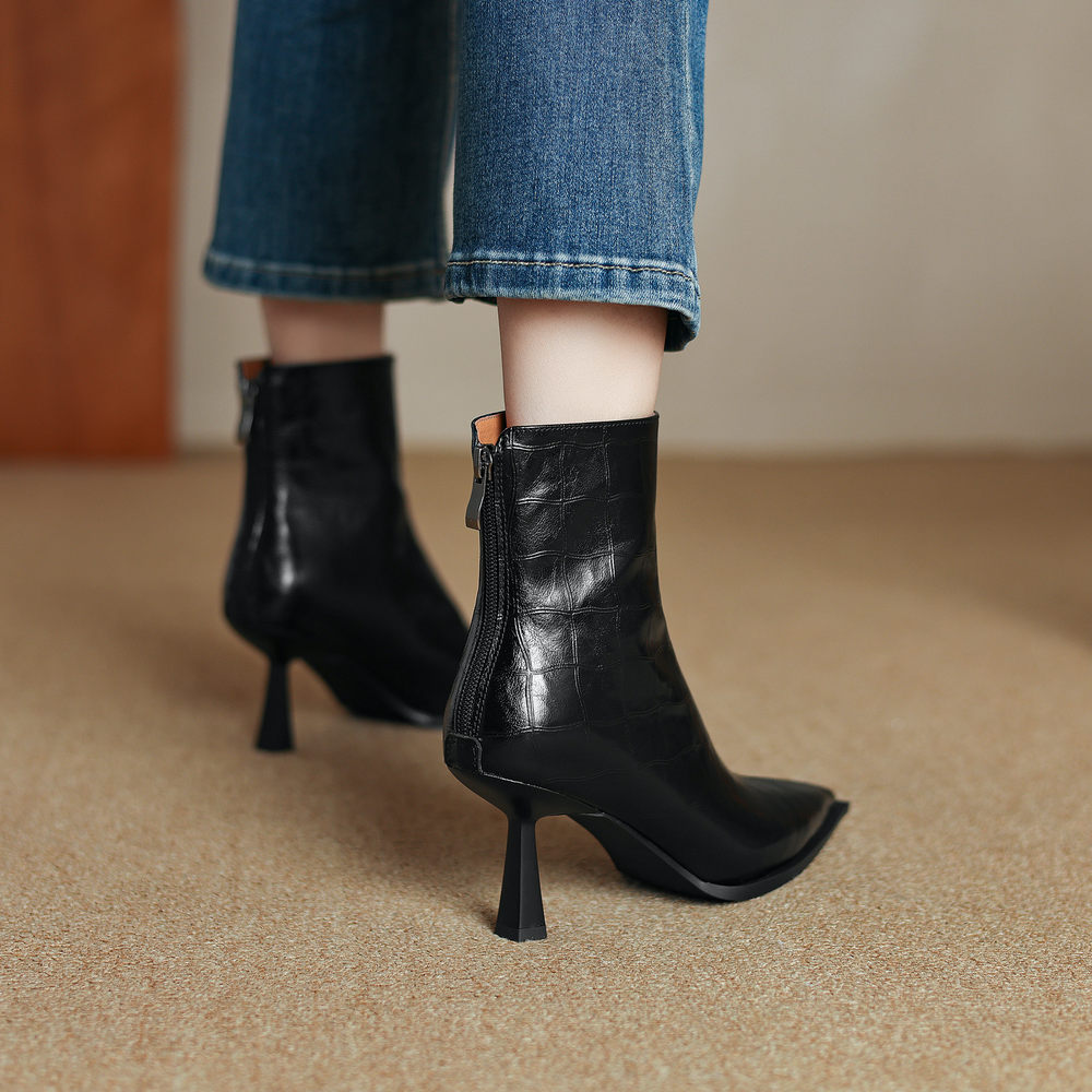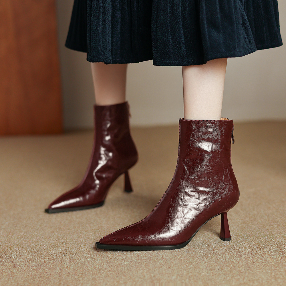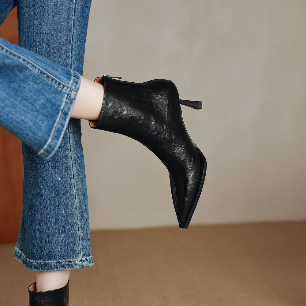 Crafted from high-quality. genuine leather. these Footens Shoes Belen Women's High Heels Leather Ankle Boots are the perfect blend of style and durability. With a slim 3" heel and pointed toe design. Its style will allow you to look elegant and confident for any occasion. These boots are made to order for a perfect fit and less waste. Made in Asia.