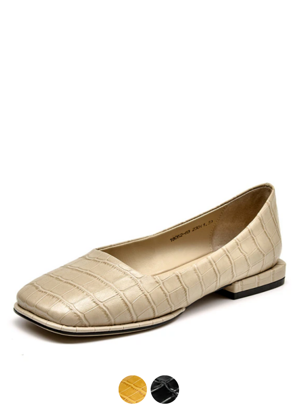 These Benoit women's flat shoes feature genuine leather uppers. a square toe design. and a slip-on closure for easy on/off. The rubber outsole ensures durability. while the 2.2cm heel height provides just the right amount of lift that won't compromise comfort. With a variety of width options to choose from and a true-to-size fit. these shoes are great for any occasion.