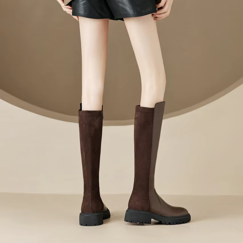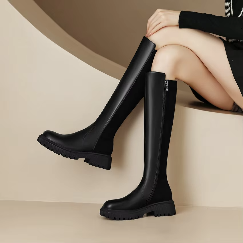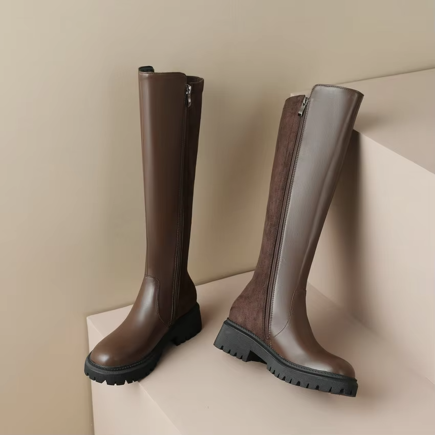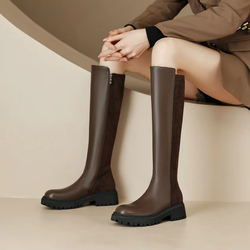 Take your adventurous spirit to new heights with Footens Shoes Berly Women's Knee-High Zipper Boots. These boots are designed for winter and autumn. featuring a genuine leather lining. a microfiber shaft and upper. and a durable rubber outsole. The square heel and platform element are bold. while the zip closure allows for easy on and off. With a comfortable fit and standard calf width of 12-15 inches. zip up and take on the season!