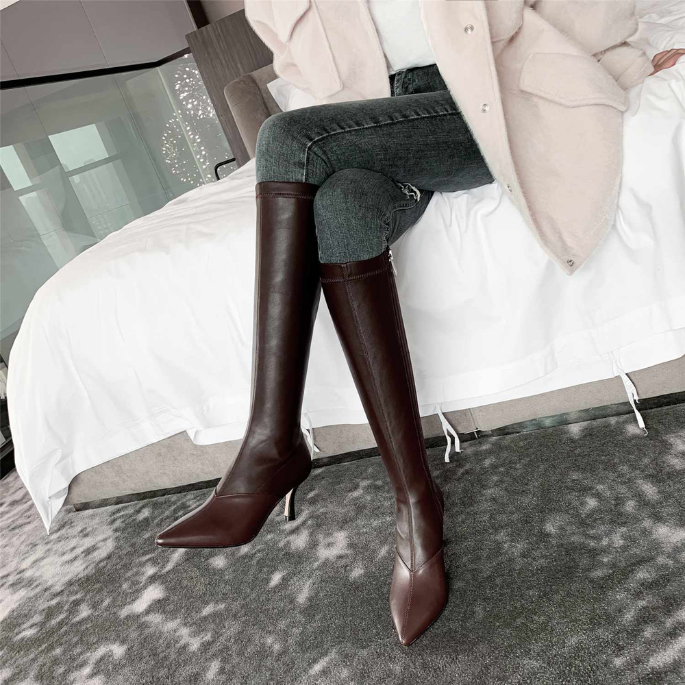 Stay comfortable and stylish all day long with the Daira Women's Boots from Footens Shoes. Crafted from genuine leather. these boots feature a luxurious microfiber shaft. rubber outsole. short plush insole and lining. and a trendy knee-high design. Their pointed toe. thin heel. and fashion-forward zipper closure make them perfect for any winter or autumn outfit. Get ready to look sophisticated with these Daira boots from Footens Shoes. choose your favorite color. black or white.