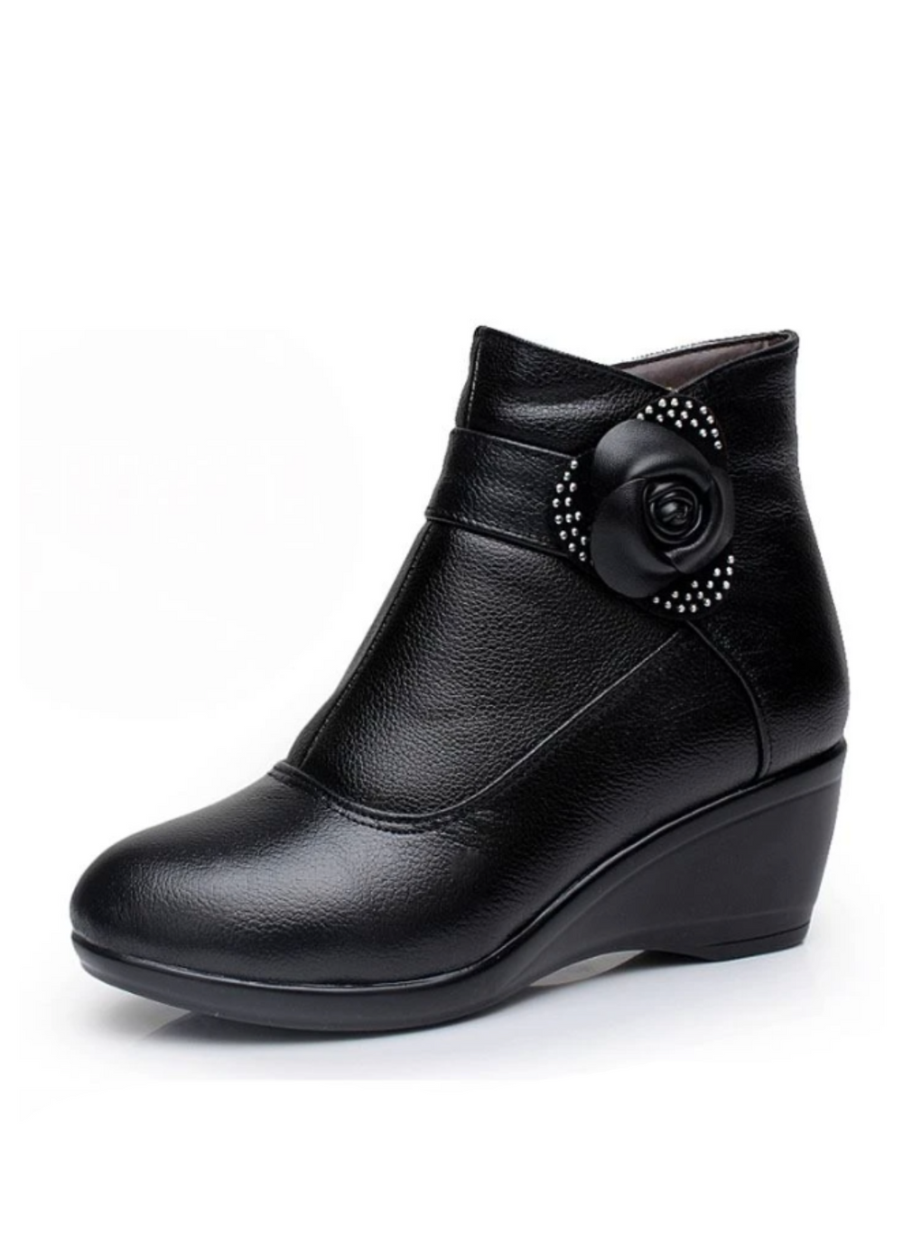 These comfortable and stylish Delia women's boots have a comfy fit that is designed to provide all-day comfort. Guaranteed to keep her feet warm and protected from the cold with a genuine leather upper and rubber outsole. which means that they're extremely durable. The faux leather lining adds a touch of luxury. The boot comes with a zip closure for easy on-and-off. This comfortable boot is the perfect accessory to complete your outfit. from formal to casual.