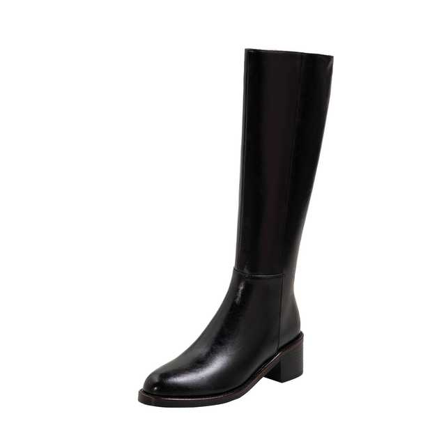 These Dewey Women's Square Heel Boots from Footens Shoes offer a high level of durability and comfort. Crafted of genuine leather and split leather. with a short plush lining. they are designed to last through the seasons. The boot features a trendy square heel and a zip closure. A rubber outsole provides reliable traction and the boots fit true to size. Enjoy a stylish look with these knee-high boots by Footens Shoes.
