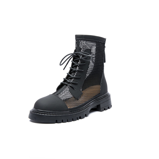 The Dominic women's boots are crafted with genuine leather and mesh. offering unmatched style and breathability. Featuring a signature square heel and round toe. the air mesh and rubber outsole will keep you comfortable for hours. And with a polyurethane lining. the 1.5" platform and zip closure provide a secure and snug fit. Ideal for the summer season.
