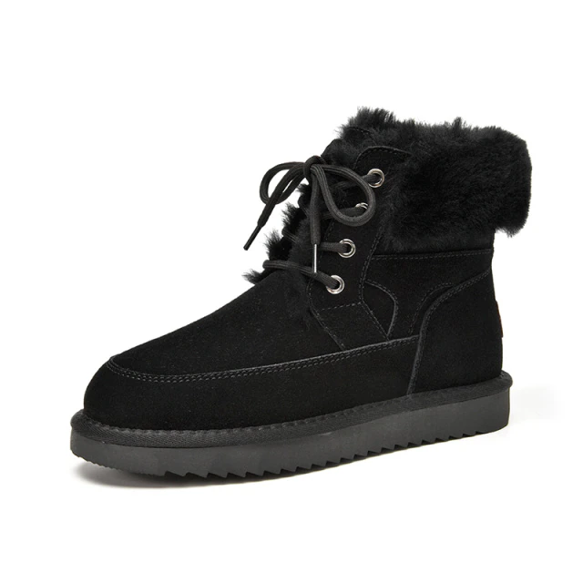The Duena Women's Snow Boots from Footens Shoes offer winter protection with style. These mid-calf snow boots feature a waterproof upper material. faux fur lining. and a comfortable 2-inch heel. The lace-up closure provides a secure fit that fits true to size. The round toe and 1.18 in. insole complete the design for a timelessly stylish winter look.