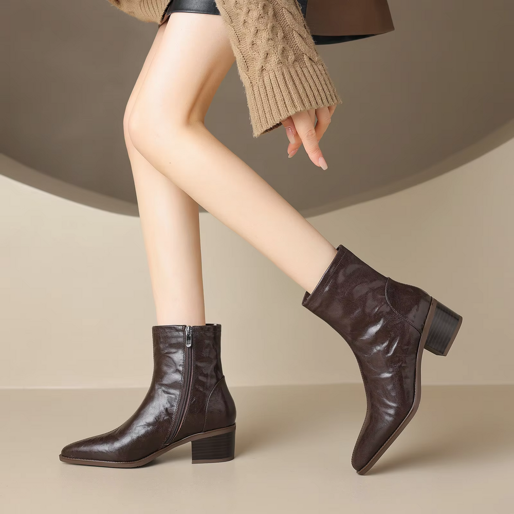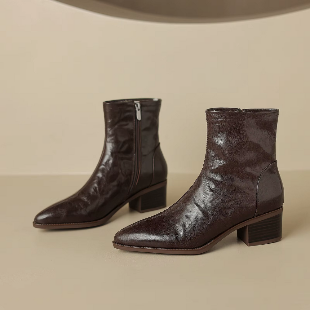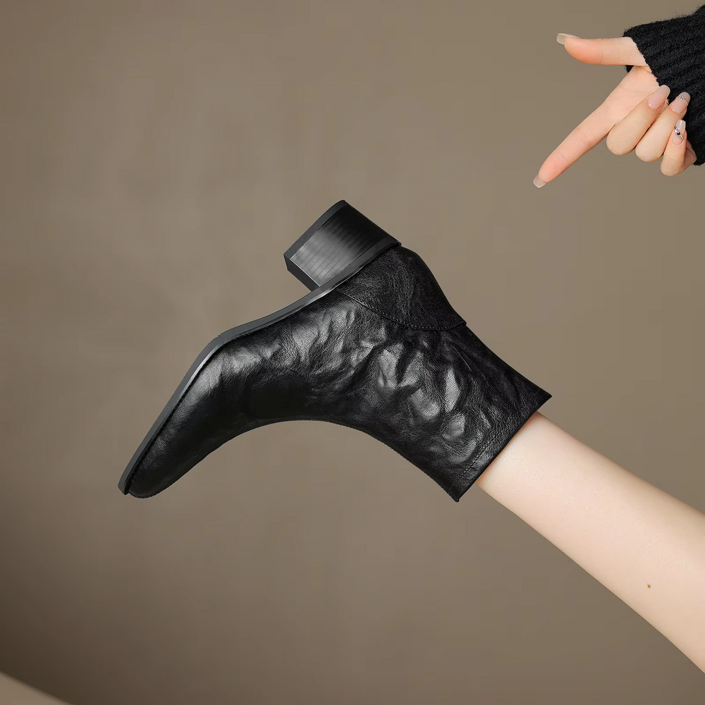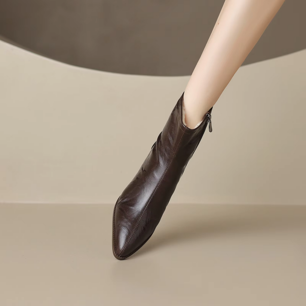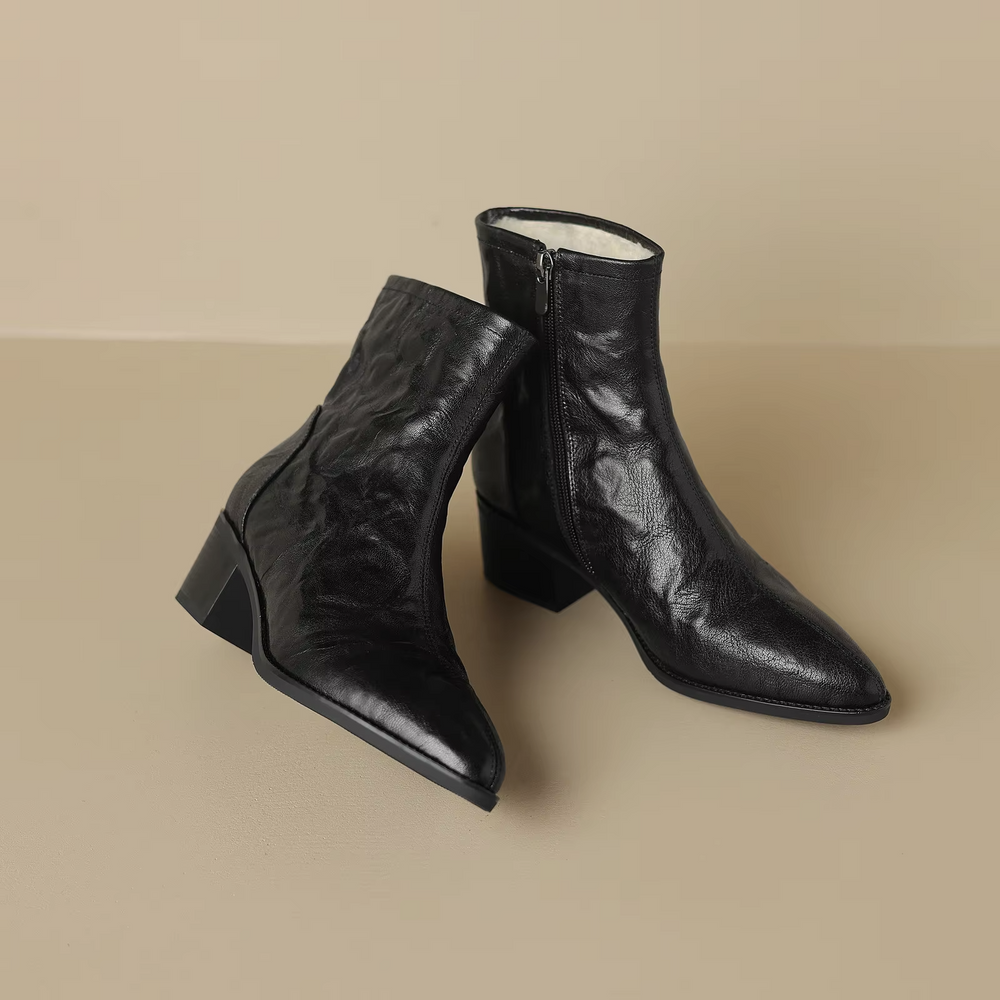 Upgrade your winter wardrobe with Footens Shoes Isy Women's Wool Boots. Made of sheepskin. these ankle boots feature a stylish pointed toe and square heel for a sleek look. With a warm wool lining and rubber outsole. they are perfect for colder seasons. Comfortable and stylish. they are a must-have for any fashion-forward woman.