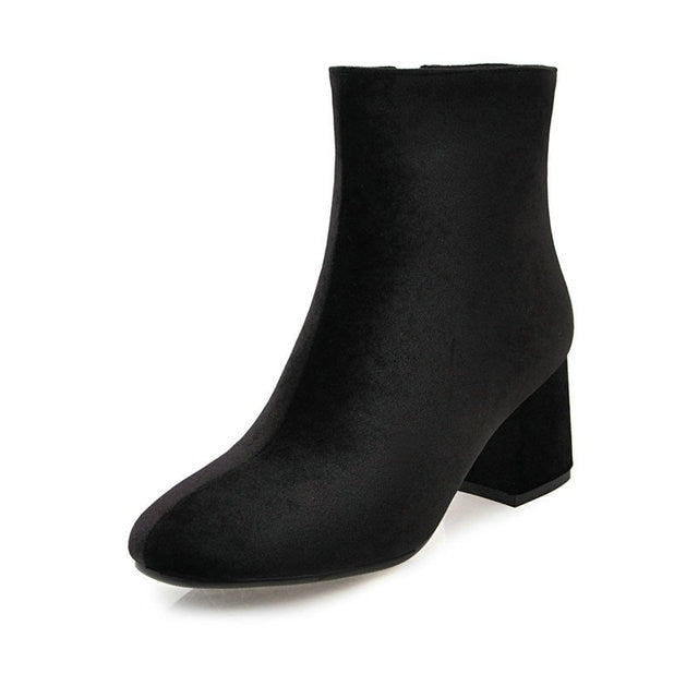 The Janeth Women's Booties from Footens Shoes ankle length is a stylish combination of classic craftsmanship and modern design. Featuring a flock leather upper. short plush lining. a square heel. and a round toe. these ankle boots are designed for comfort and durability. With a 2.3-inch heel and a 0/1.18-inch platform. these boots are perfect for any season.