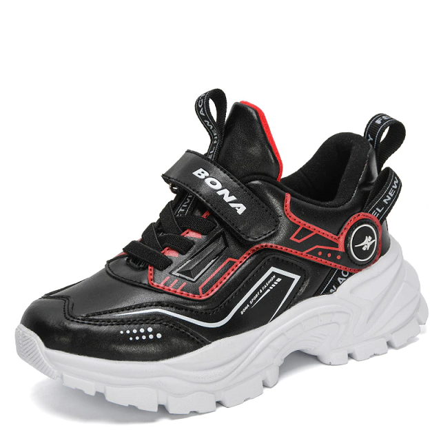 The Javier Boys' Fashion Sneaker from Footens Shoes offers a comfortable and stylish look for young boys. With a breathable synthetic upper and a cotton fabric lining. these shoes provide secure comfort and fit with the hook and loop closure. and the EVA outsole ensures a secure grip for active play. The polyurethane insole guarantees comfort for all-day wear.
