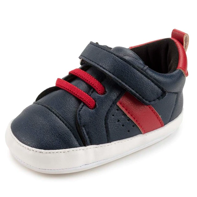 Looking for a stylish. comfortable way to keep your little one's feet cozy? These Josue boys' sneakers have a soft canvas upper that's sure to feel great on your baby's feet. They are easy to slip on and off. The hook-and-loop strap has a secure fit that helps keep the shoe securely secure on his foot.