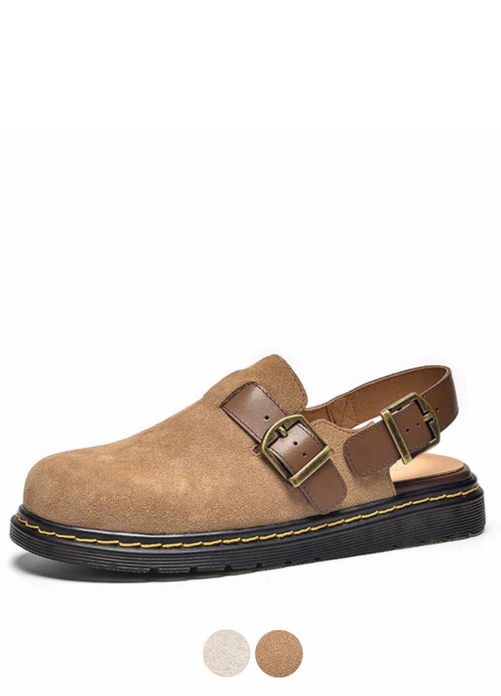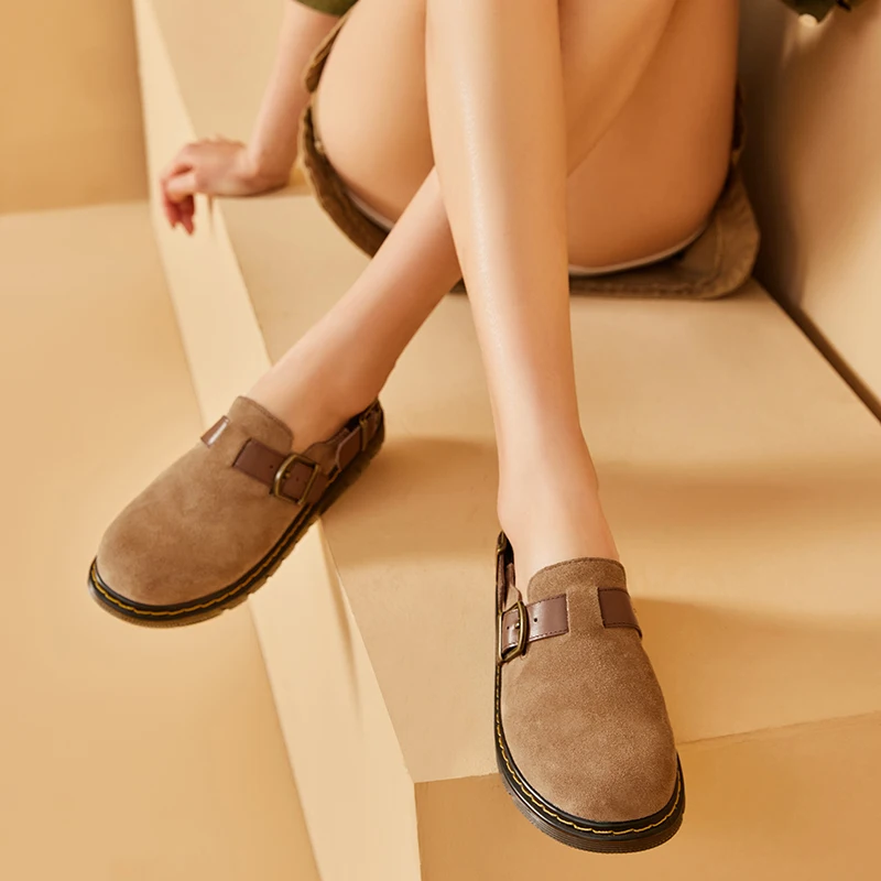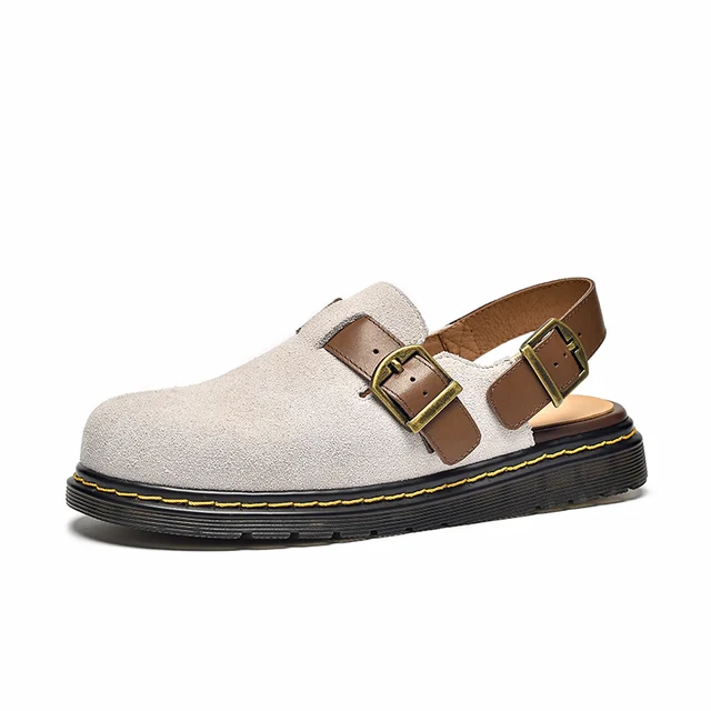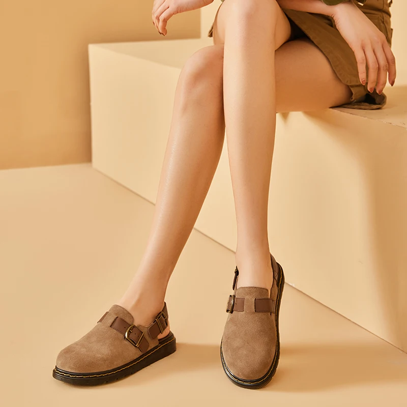 These Julia women's strap buckle leather sandals by Footens Shoes offer comfort and durability. Pigskin lining and cow leather upper provide maximum breathability. Perfect for casual occasions. the sandals feature a back strap and covered side vamp for a secure fit. Available in beige and brown.