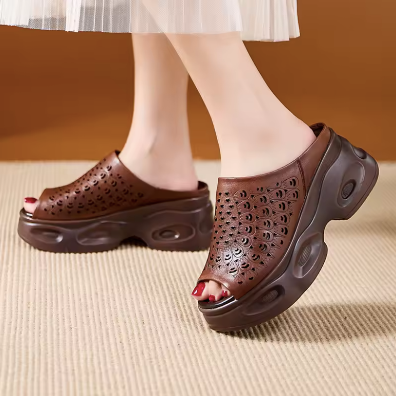 Expertly handcrafted with genuine leather. the Footens Shoes Karla Wedges provide durable and stylish footwear for outdoor wear. The polyurethane insoles offer comfortable support while the rubber outsole reduces waste. Perfect for summer. autumn. and spring seasons. these slides fit true to size.