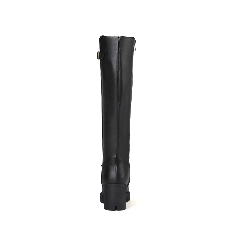 Elevate your winter wardrobe with Lameda Women's Dress Boots by Footens Shoes. Crafted with a square heel and knee-high polyurethane upper. these boots are perfect for the colder months. The plush lining and rubber outsole provide comfort and durability. while the buckle detail adds a touch of fashion. Zip closure for easy wear. Available in black and brown.