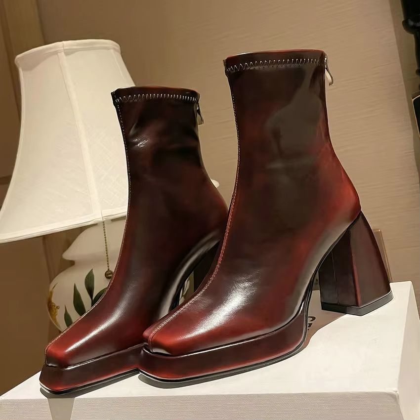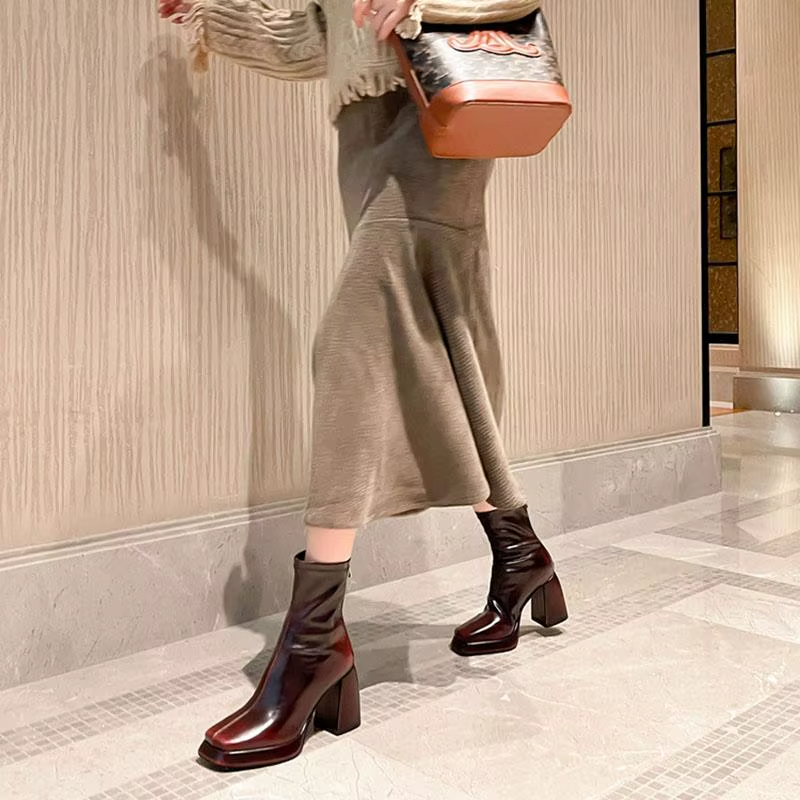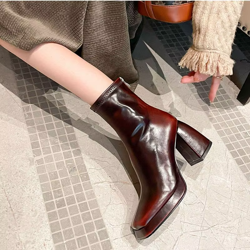 Embrace the thrill of the unknown with Footens Shoes Lola Mid-Calf Stretch Boots for women. Made with genuine cow leather and rubber soles. these boots offer comfort and durability for any winter or autumn adventure. Featuring a bold zipper and square-toe design. these boots are perfect for the daring office lady. Square heel at 3'' and platform height at 1.5'' offer the perfect balance of style and stability. Fits true to size.