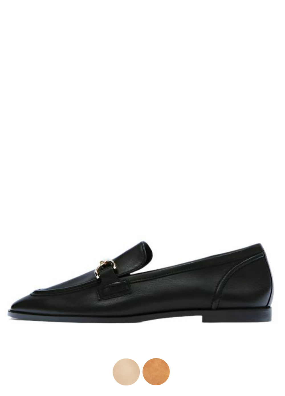 The Footens Shoes Lorena Women's Office Loafers. Crafted with genuine cow leather. these loafers are perfect for the office or casual occasions. Slip on and go with ease thanks to the round toe and slip-on closure. The metal decoration adds a touch of sophistication to these elegant office lady-style loafers. Crafted with a rubber outsole and sheepskin insoles for all-day comfort. Fits true to size.