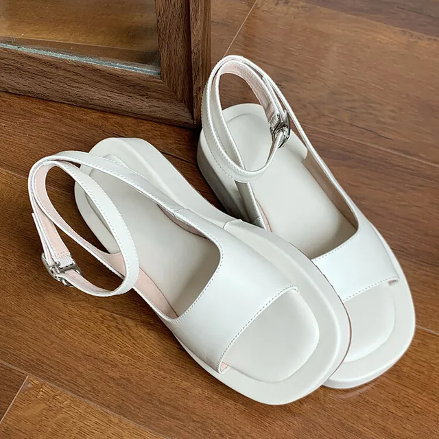 Elevate your summer look with the Lucy Women's Leather Sandals by Footens Shoes. Made with genuine leather and a TPR outsole. these sandals provide comfort and durability. The buckle strap closure ensures a secure fit while the open side vamp adds a touch of style. Perfect for any occasion. these sandals are a must-have for any wardrobe.