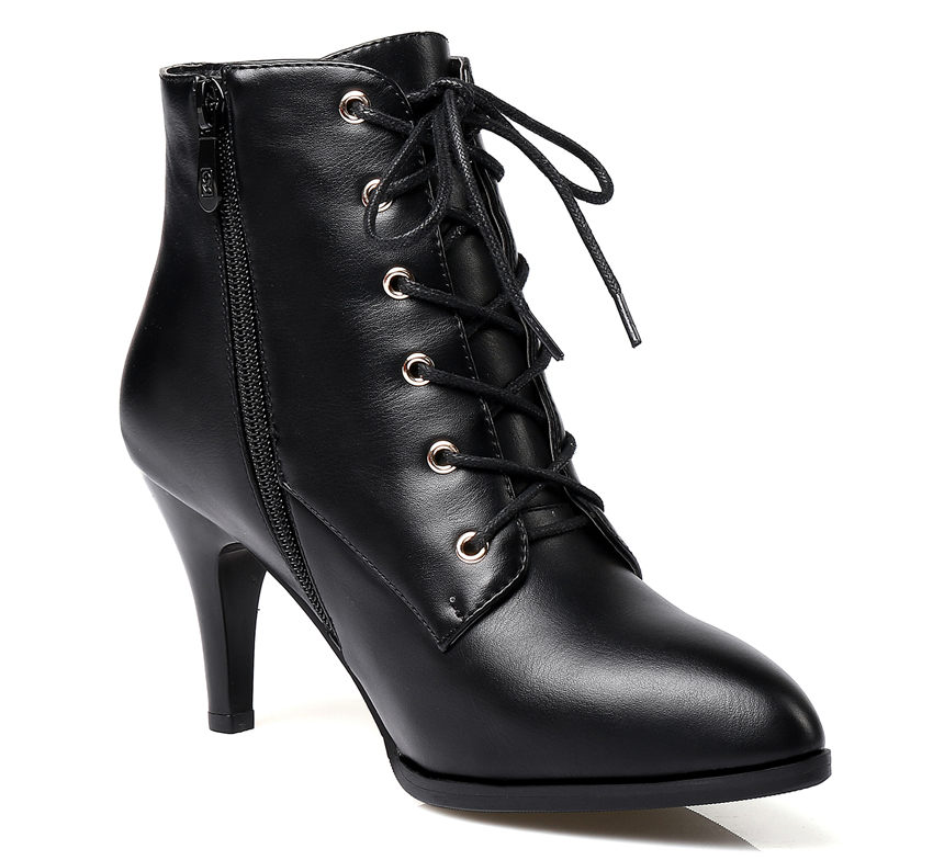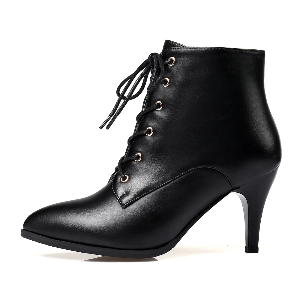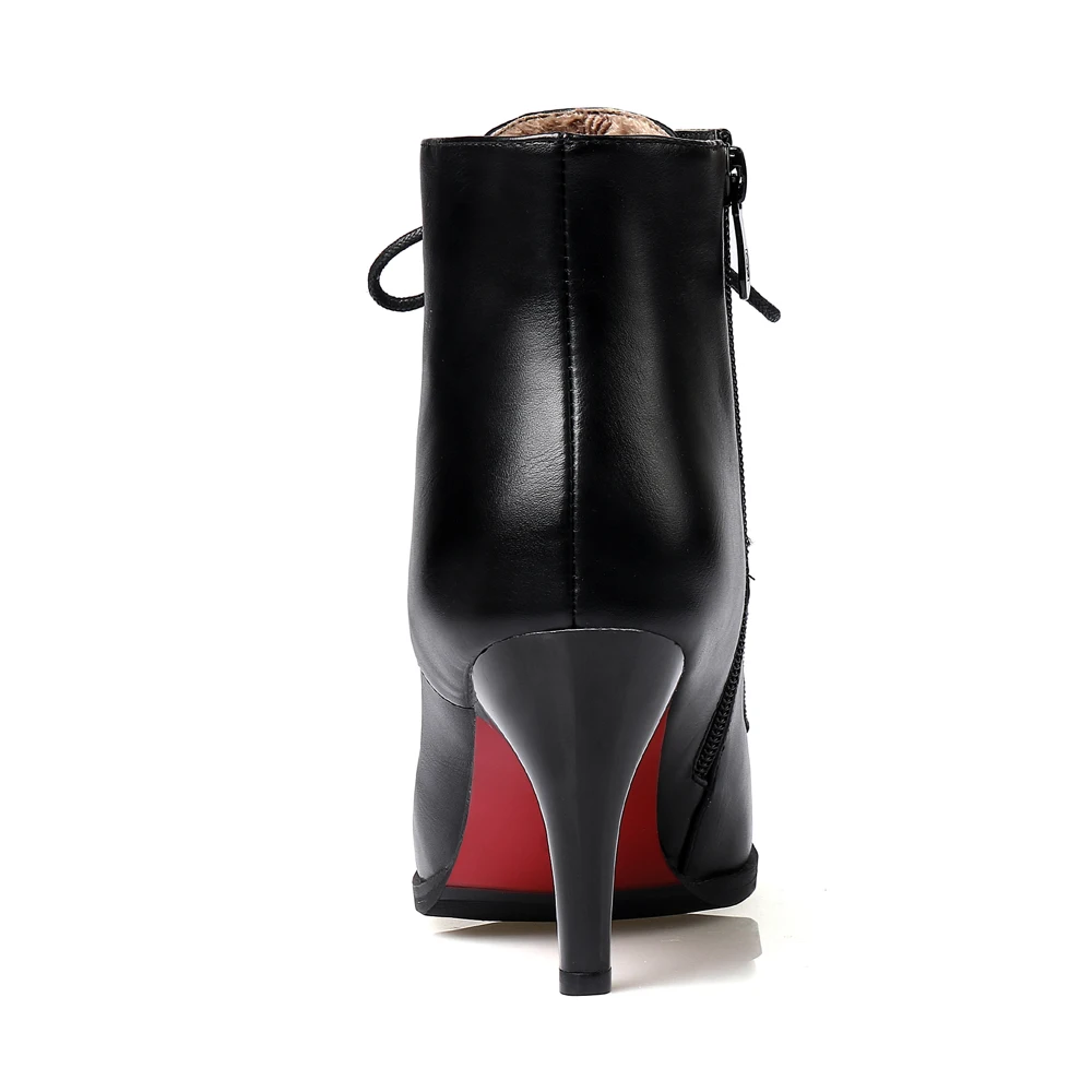 The Luisa Women's Lace-Up Ankle Boots by Footens Shoes are perfect for the winter and autumn seasons. Made with a polyurethane upper and shaft materials. these boots feature a pointed toe and high spike heels for a stylish look. The rubber outsole. short plush lining. and insole provide comfort and durability. With a zip closure and ankle height. these boots fit true to your size.