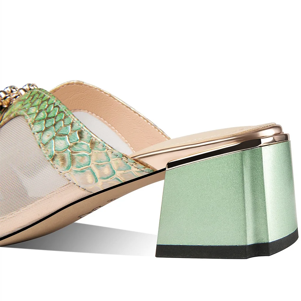 The Malena Women's Fashion Square Heels Sandals by Footens Shoes are perfect for any party occasion! Crafted with genuine leather and a rubber sole for high-quality and long-lasting wear. Slip-on design with a comfortable square heel measuring 2 inches. These modern sandals are true to size for the perfect fit. Expertly designed for both style and comfort.