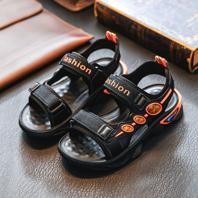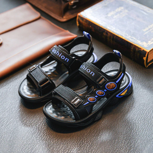 Mark boys' sandals are built with a leather upper that's soft and comfortable. They feature a round toe. a durable rubber outsole. and a hook-and-loop closure. The synthetic lining keeps these sandals lightweight and breathable.