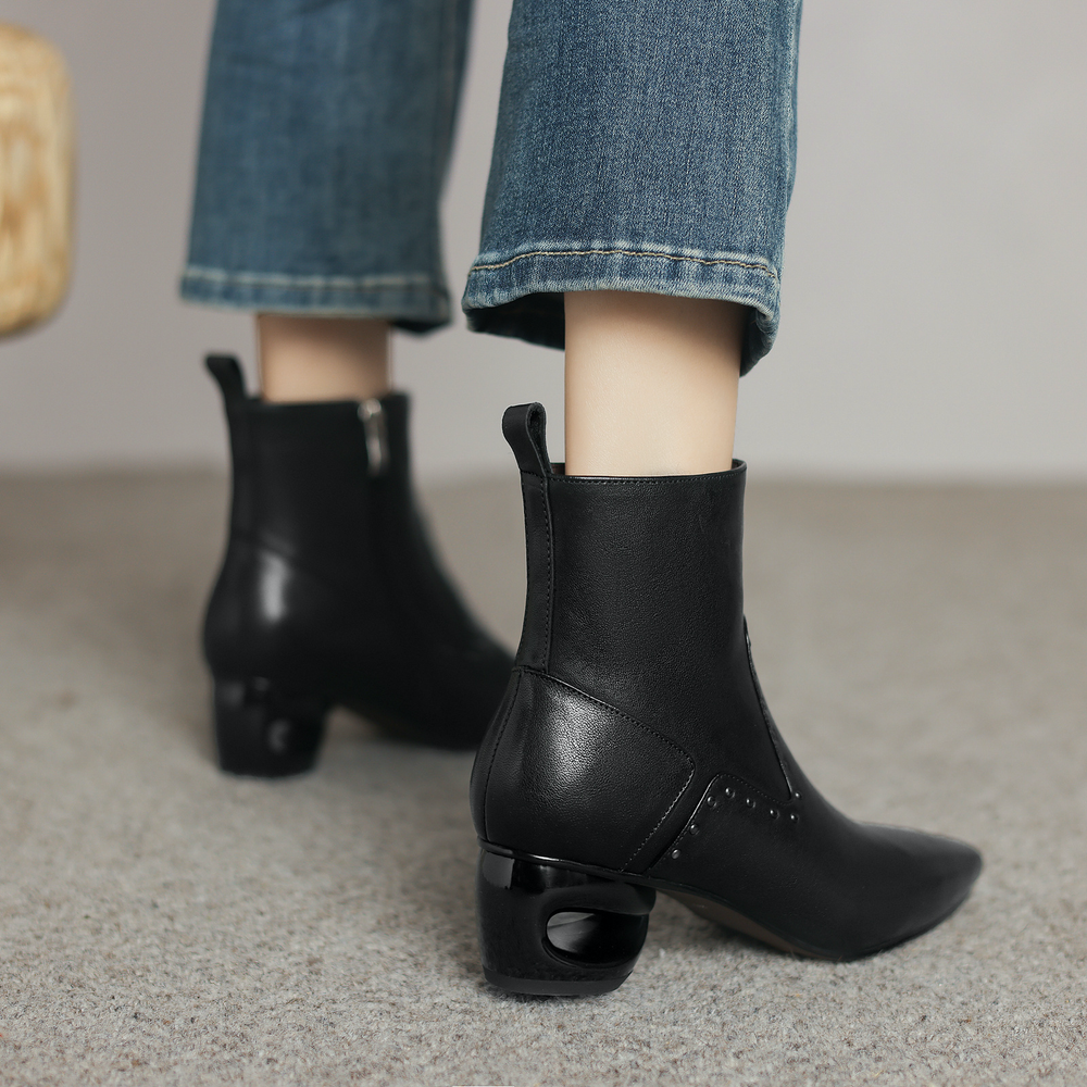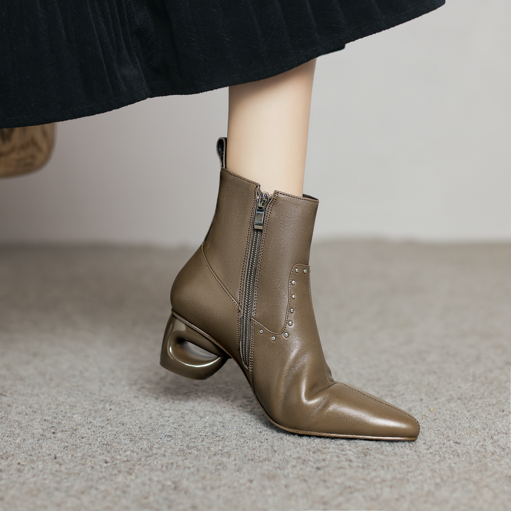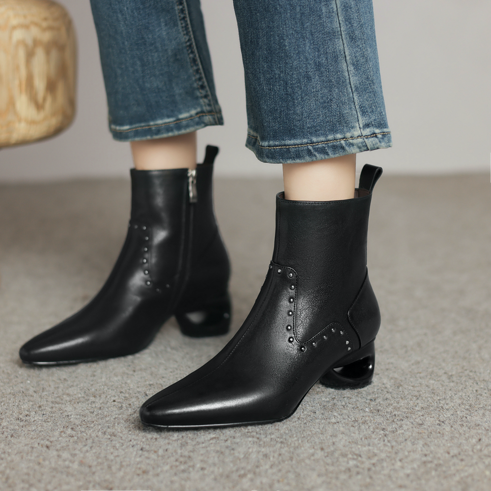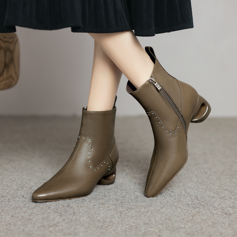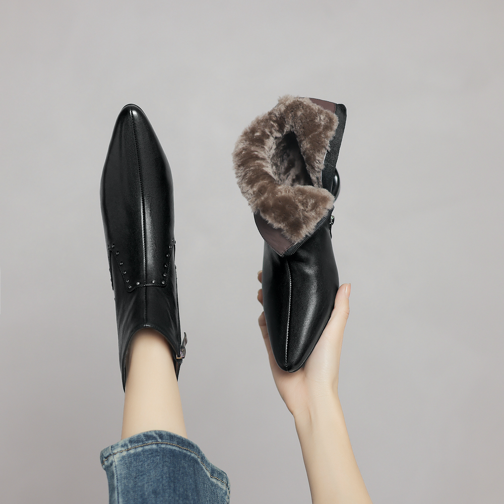 Upgrade your winter wardrobe with Footens Shoes Mary Women's Pointed Toe Ankle Boots. Made of these boots offer ultimate warmth and comfort. With a rubber outsole and wool lining. they provide excellent grip and insulation. The square heel adds a unique touch. while the zipper closure allows for easy on and off. Available in trendy winter/autumn colors.