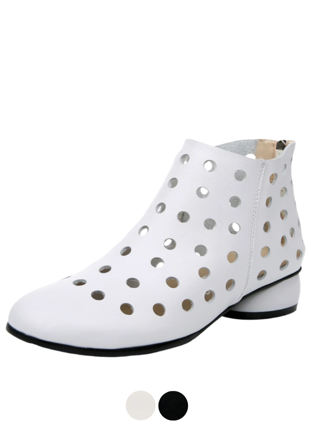 Indulge in luxury with our Footens Shoes Matty Women's Summer Ankle Boots. Made with genuine cow leather and a rubber outsole. these ankle boots are perfect for spring and autumn. The square heel and polyurethane insole provide both comfort and style. while the zipper closure adds a touch of sophistication. Step into fashion with these exclusive boots.