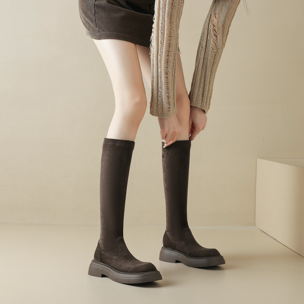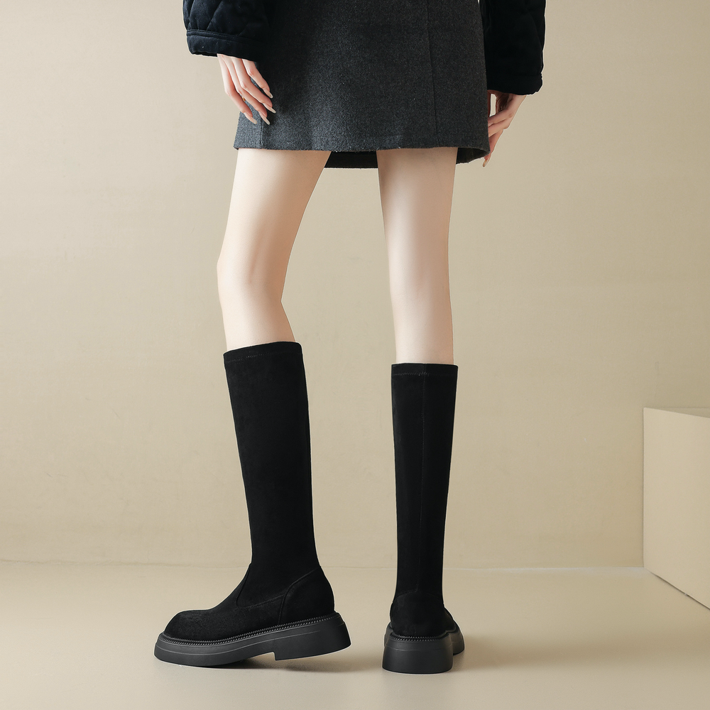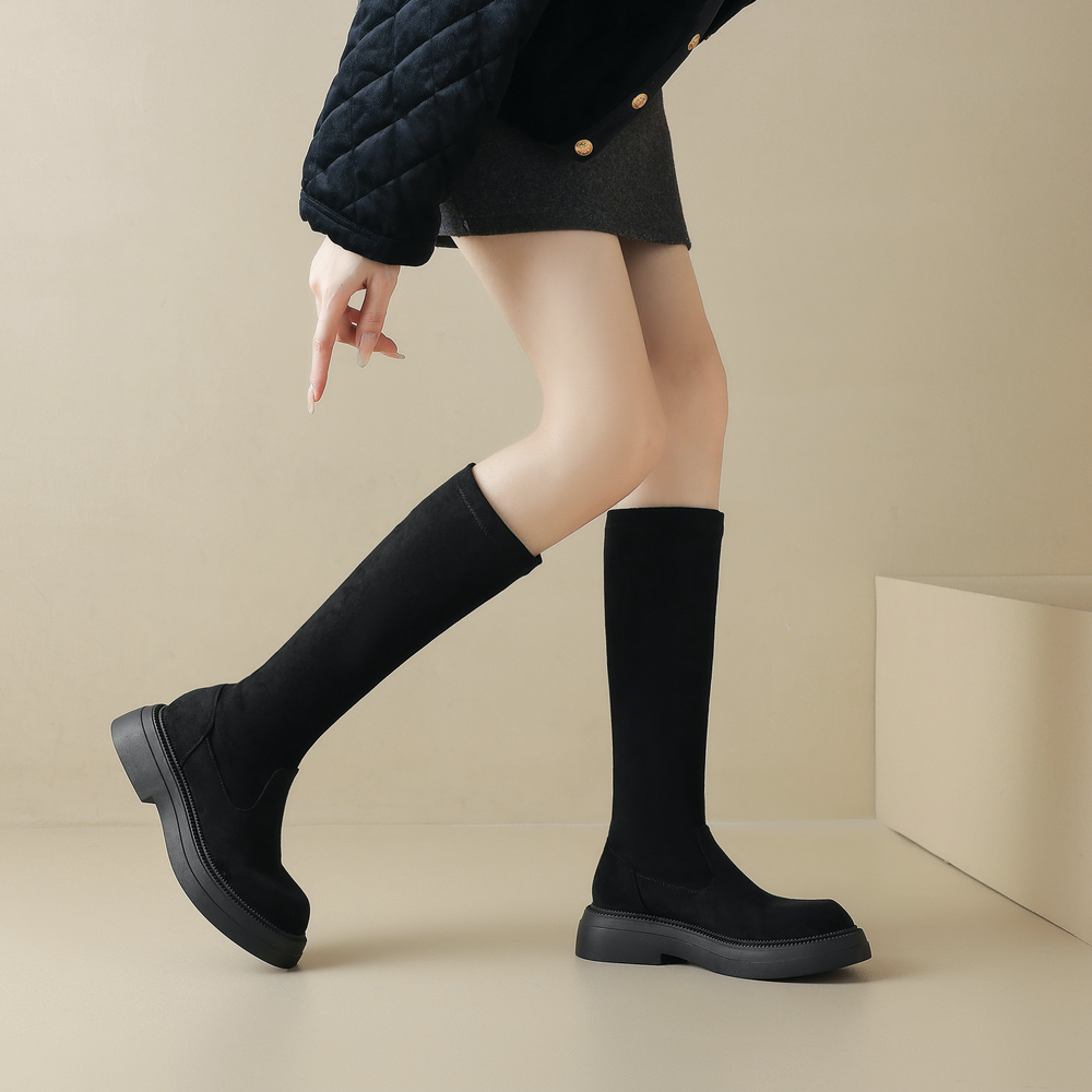 You can never go wrong with the modern-chic look of the Milagros Women's Knee High Stretch Fabric Boots by USS. suitable for both winter and autumn seasons. making it ideal for both jeans and skirts. Their stretch fabric shaft and slip-on closure provide a comfortable fit. while the rubber outsole and round toe shape ensure durability. Made-to-order for a more sustainable and less wasteful production process.