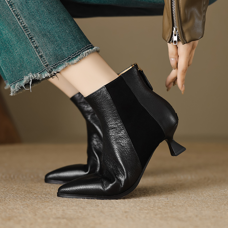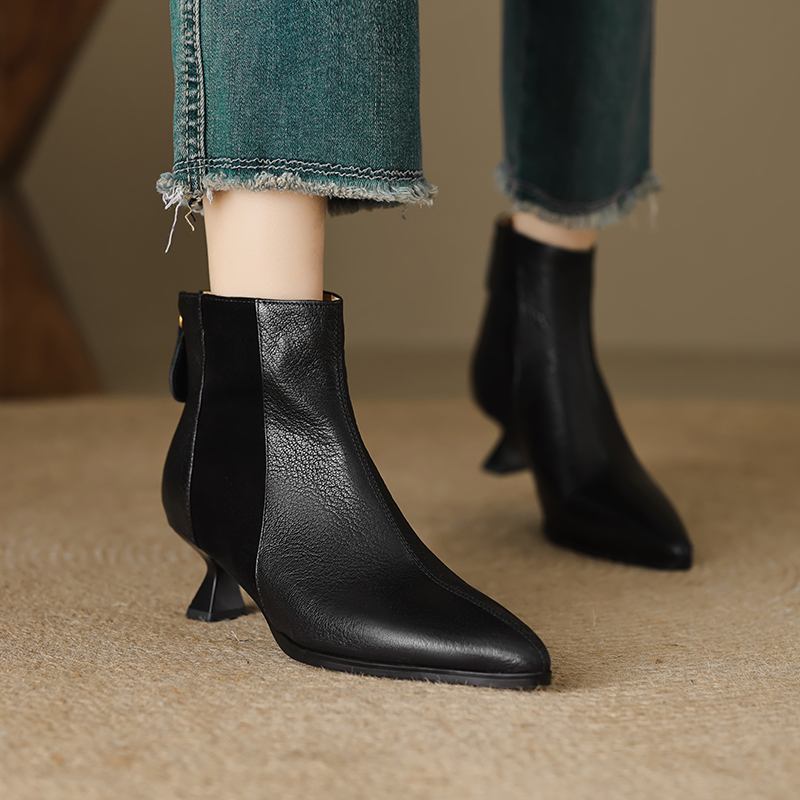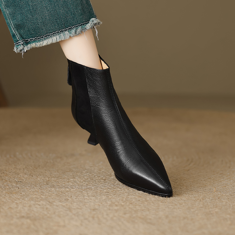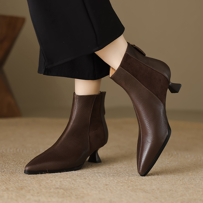 A versatile add to any closet. the Milei booties from Footens Shoes pair perfectly with all your favorite looks. From office ensembles to weekend 'fits. the polished style is crafted with a short kitten heel and a trendy pointed toe that delivers a fashionable flair to the classic silhouette. Made to order with high-quality. genuine leather.