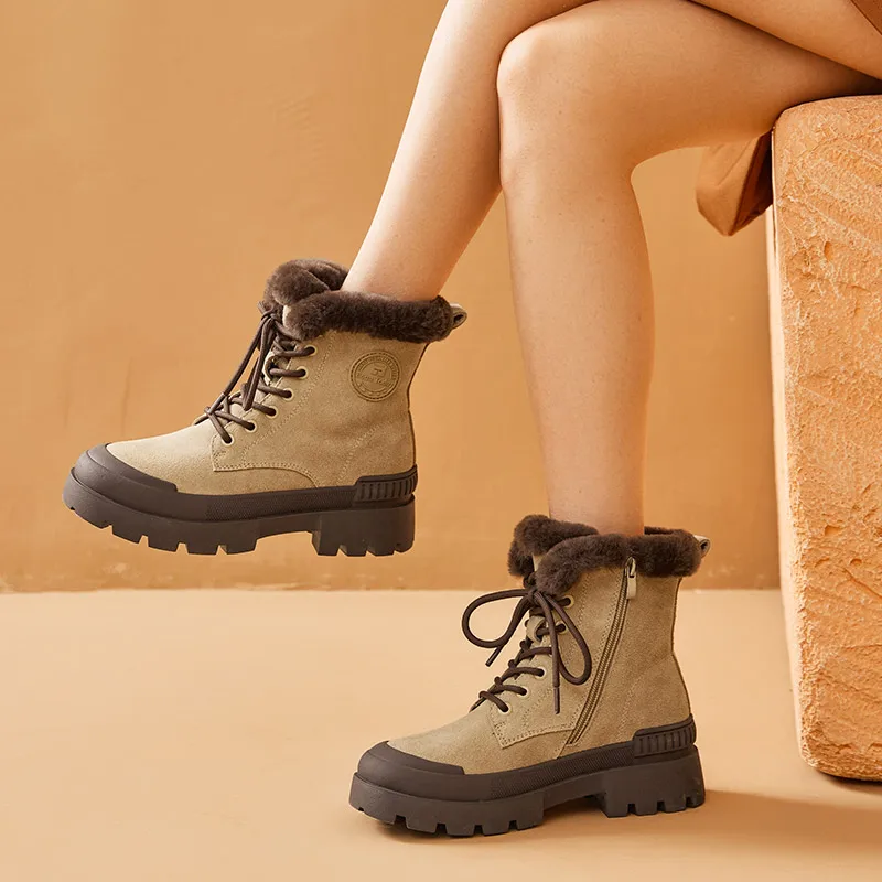Add style and warmth to the winter season with Montiel Women's Boots from Footens Shoes. Crafted with a round toe. rubber outsole. plush insole. and flannel lining. these snow boots provide comfort and durability for any outdoor activity. Featuring a 1.5" heel and a platform height 1.18" take on the day in cozy style with the Montiel Women's Boots.