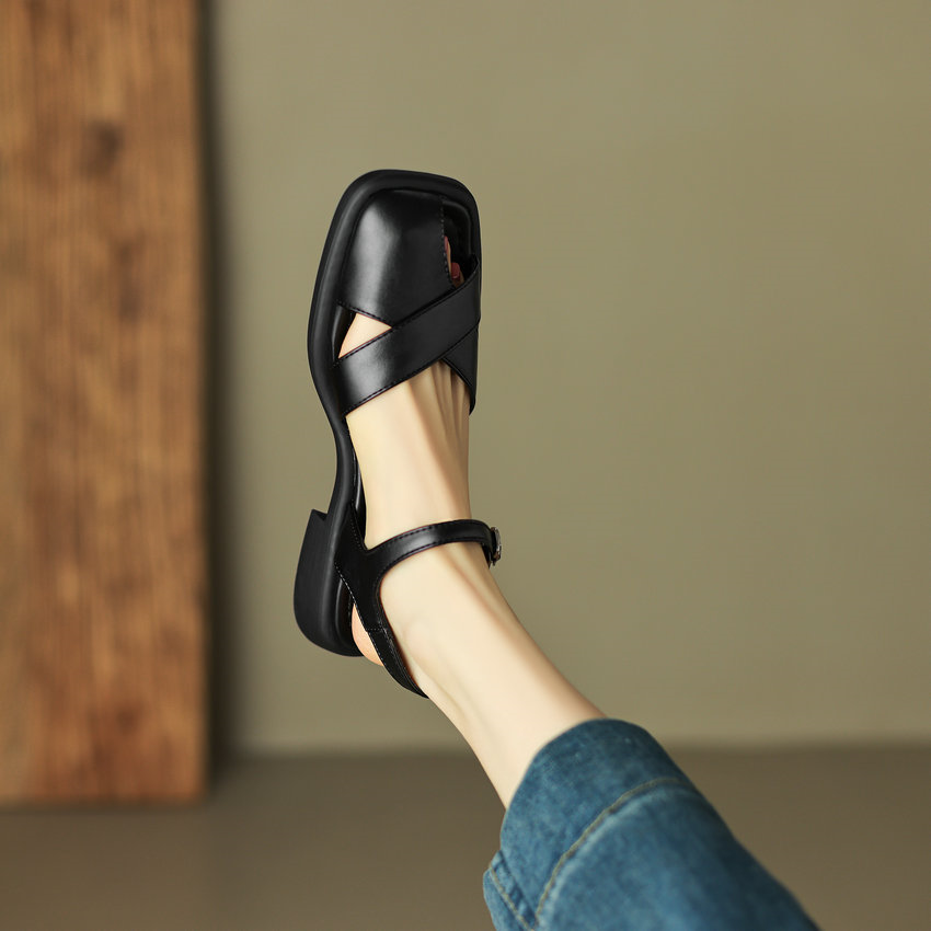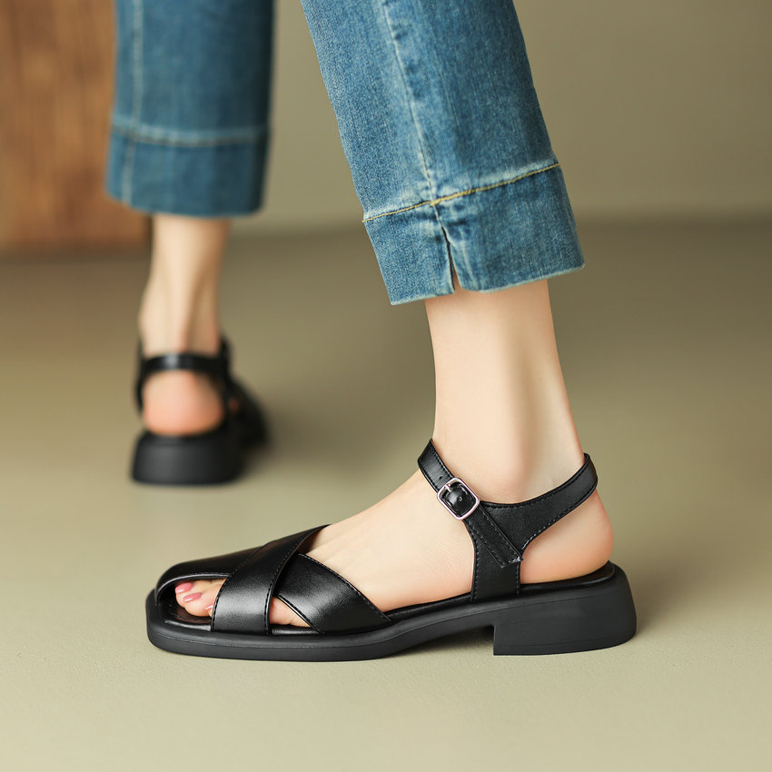 Crafted with a microfiber upper and a rubber outsole. Footens Shoes Morela Women's Summer Sandals are perfect for casual occasions. The ankle strap and buckle closure provide a secure fit. while the shallow fashion element adds a touch of style. Featuring a square heel and polyurethane lining. these sandals offer a comfortable and true-to-size fit.