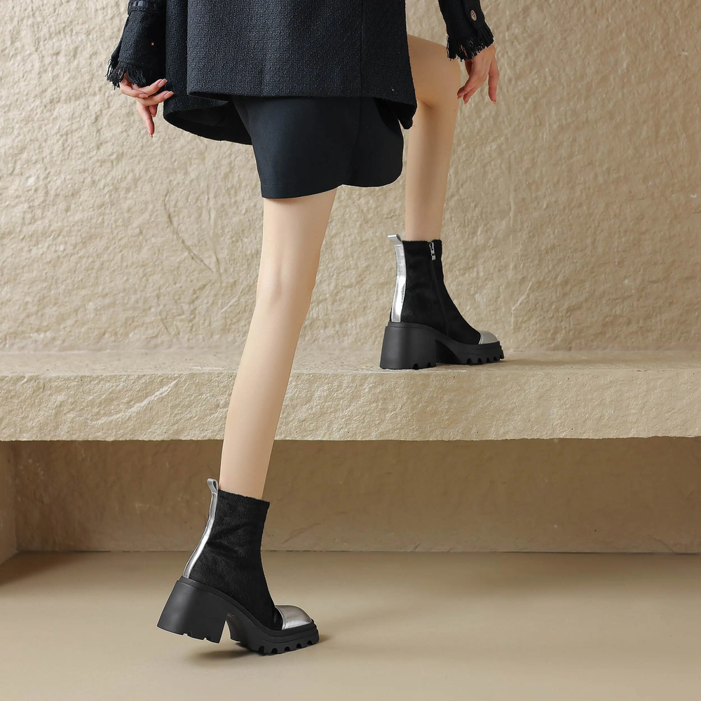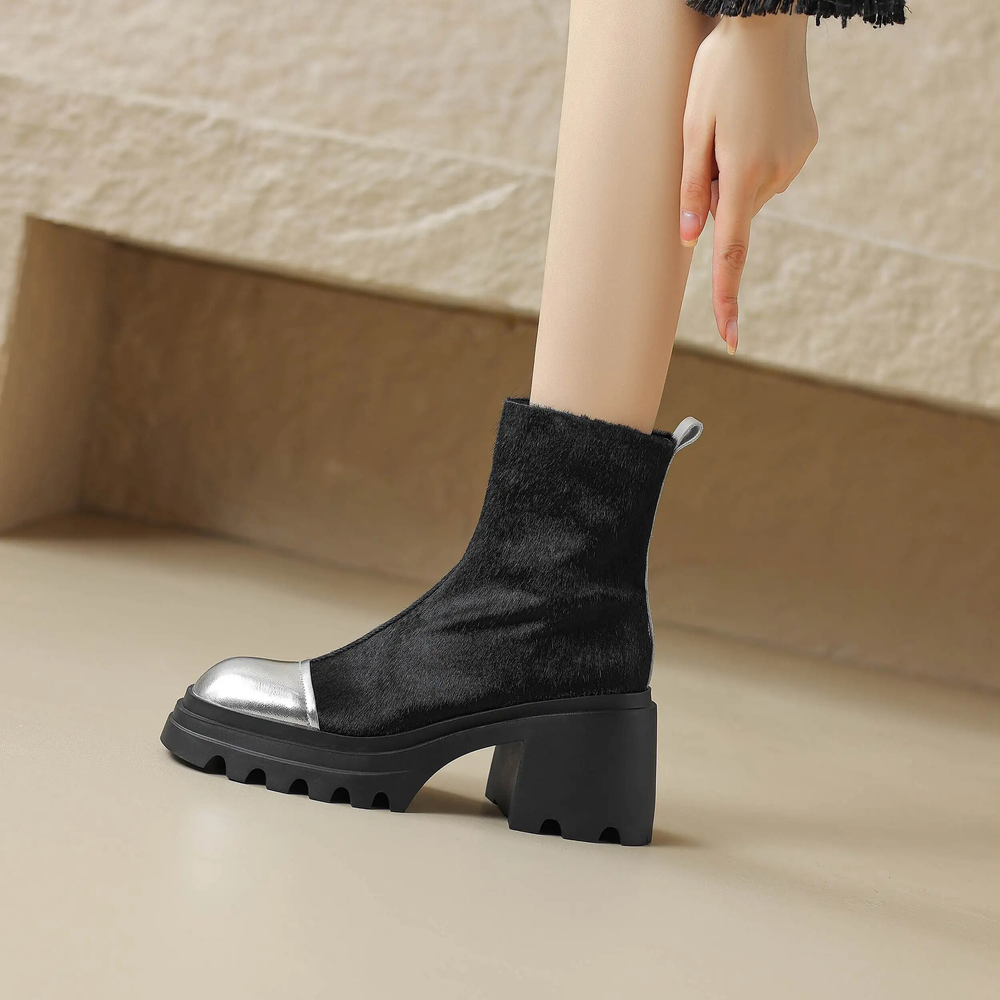 Crafted with genuine cow leather. our Nachy Western Boots by Footens Shoes offer both style and comfort. The square toe and square heel design make for a trendy and comfortable fit. The fur shaft material and short plush lining will keep your feet warm during the colder seasons. Slip into these boots for a touch of Western flair.