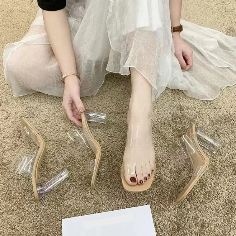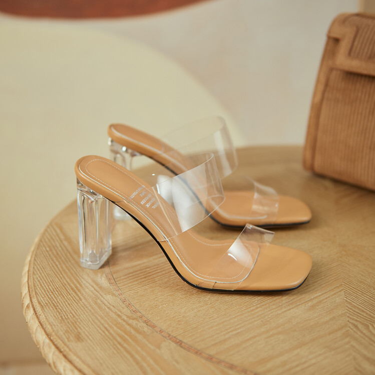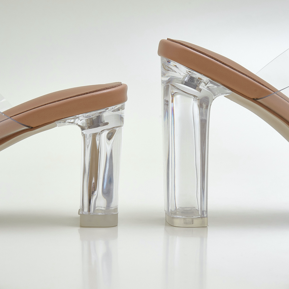 Indulge in luxury with Footens Shoes Nerza Women's Transparent High Heels Sandals. Crafted with a modern sandal design and solid pattern. these heels are perfect for parties and special occasions. The polyester upper and sheepskin insole provide comfort while the slip-on closure and back strap add a touch of elegance. Available in square heel heights of 3" or 4".