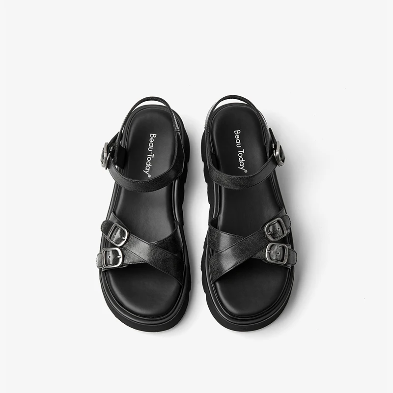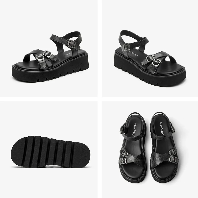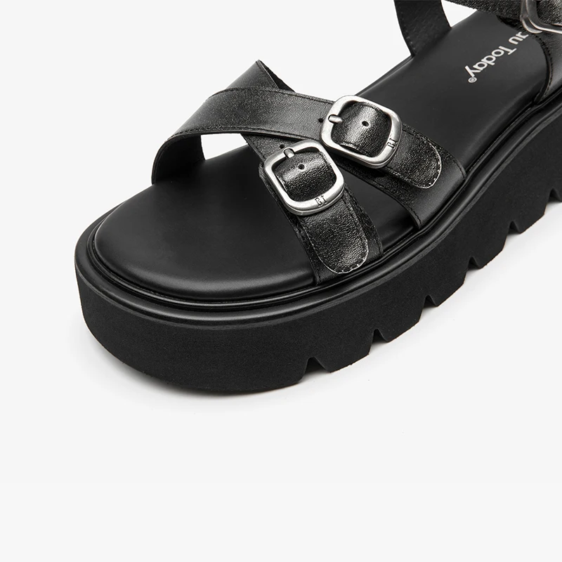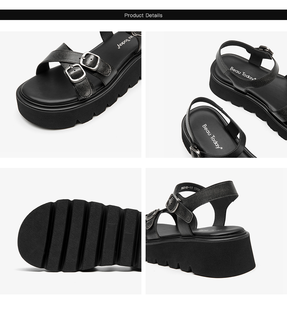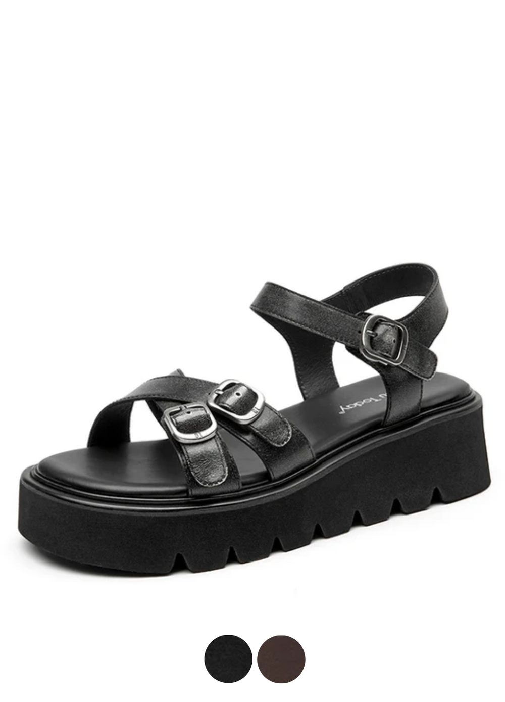 Elevate your style with Footens Shoes Nina Comfortable Platform Leather Sandals. Made with genuine cow leather and pigskin lining. these ankle strap sandals feature a sturdy EVA outsole and back strap for support. The buckle strap closure and open side vamp add a touch of sophistication. Available in black and brown.