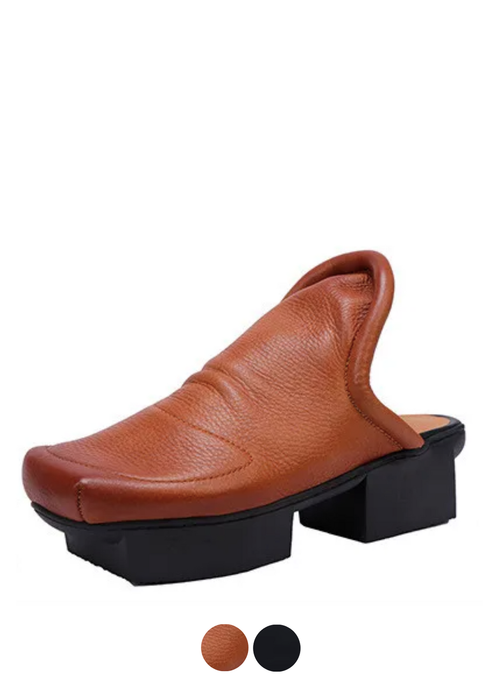 Nina Women's Leather Middle Square Toe Clogs by Footens Shoes are expertly crafted from genuine cow leather with a pigskin lining and insole. ensuring breathability and comfort. These retro-style clogs provide easy wear and reliable traction for outdoor use. The platform sole adds subtle height while maintaining stability. making it suitable for spring. summer. and autumn wear. Made to order to reduce waste.