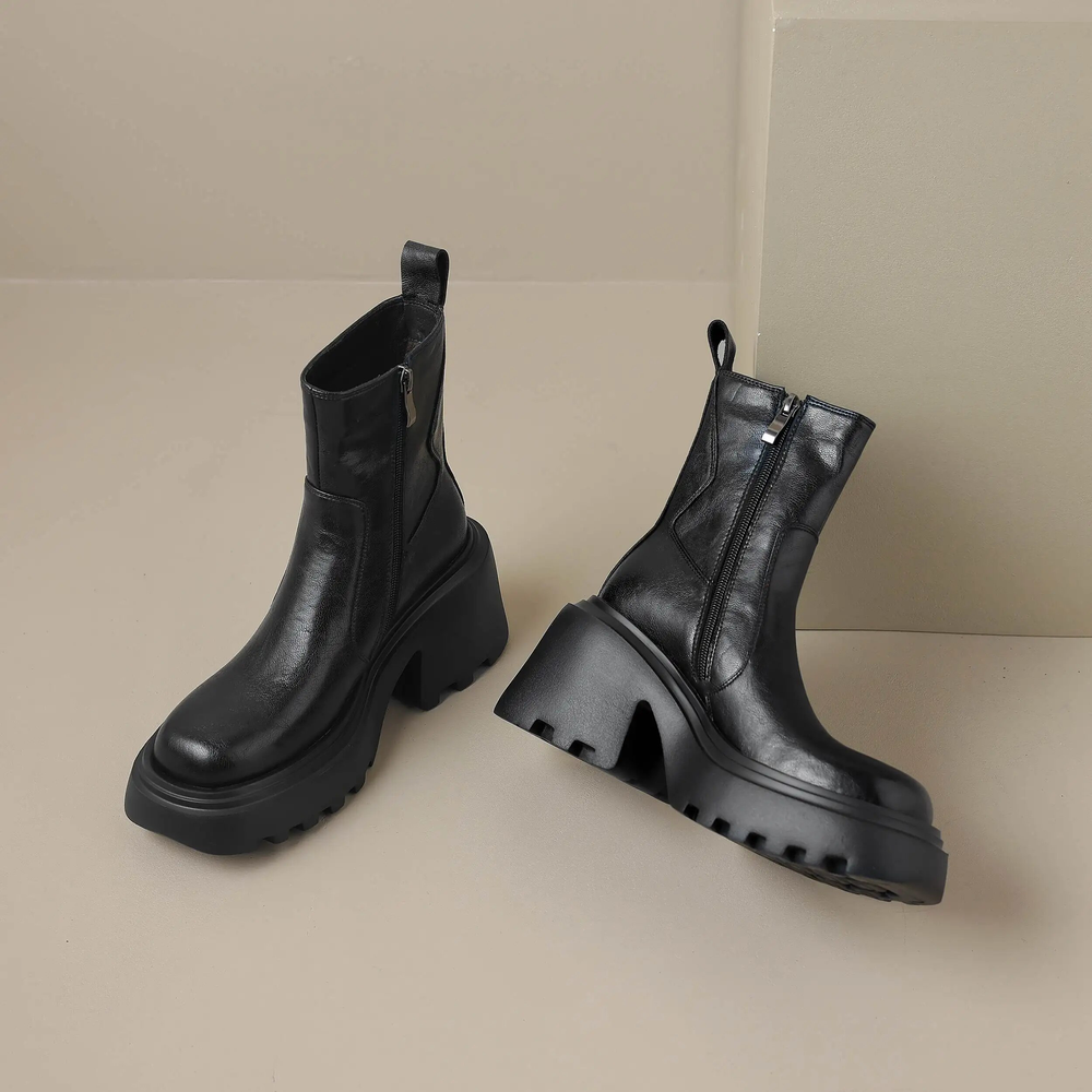 Step out in style with these fashionable Noe Women's Ankle Leather Boots by Footens Shoes. Crafted from genuine Cow Leather upper and shaft. these boots feature a round-toe. retro design. and a sturdy rubber outsole for premium quality and lasting comfort. Lined with a warm short plush insole and upper for keeping the foot comfortable and warm during the winter and autumn months. The fashion-forward zip closure. square heel. and ROME style details finish these statement boots.