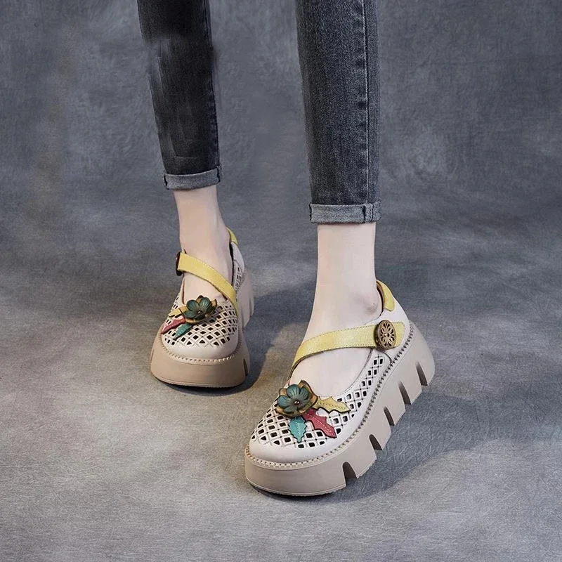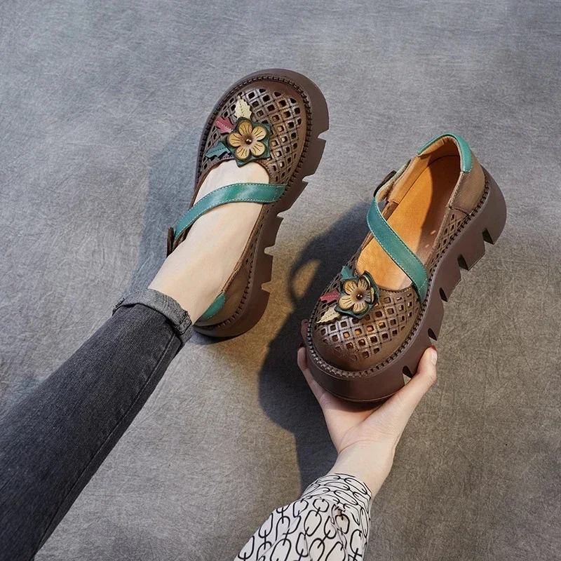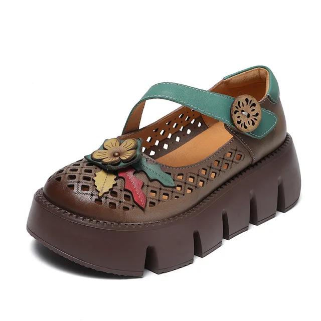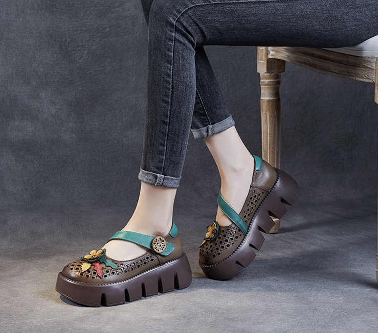 Step up your summer shoe game with Noris Women's Summer Hollow Out Platform Shoes by Footens Shoes. These flats are made with genuine cow leather and have a supportive hook & loop closure and a stylish flower design. Perfect for any season. these shoes combine comfort and fashion effortlessly.
