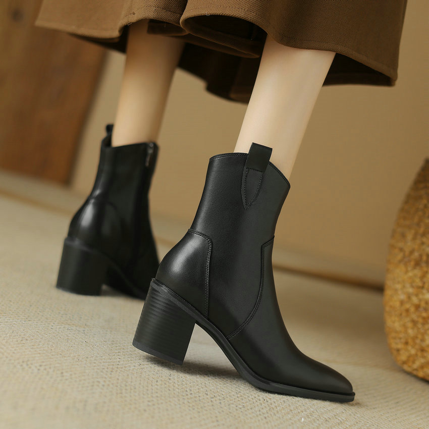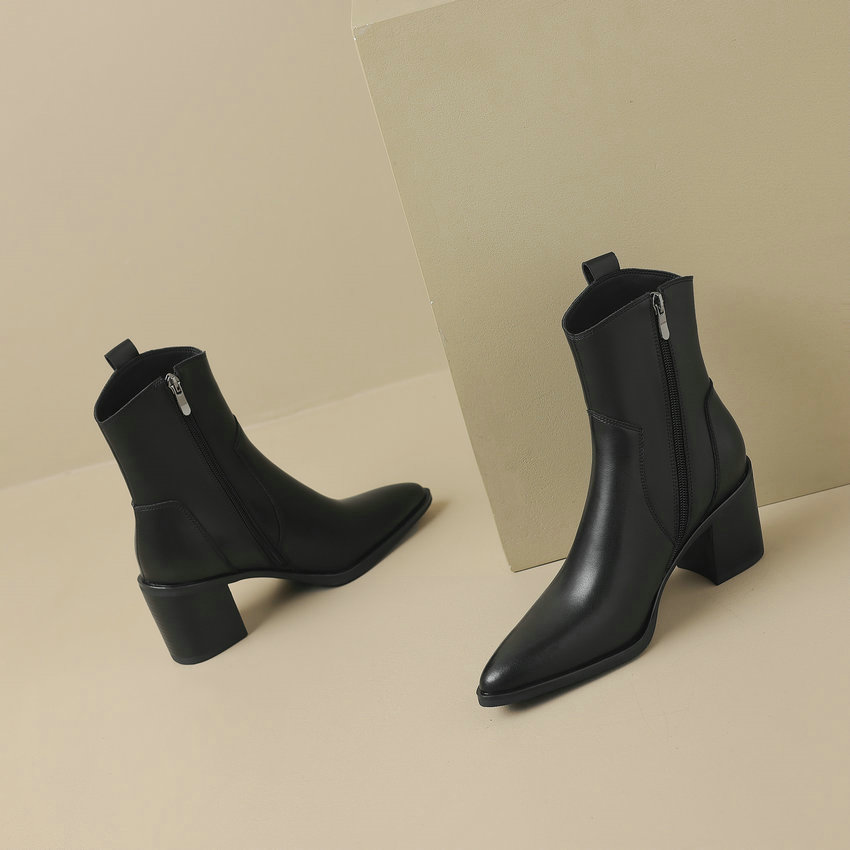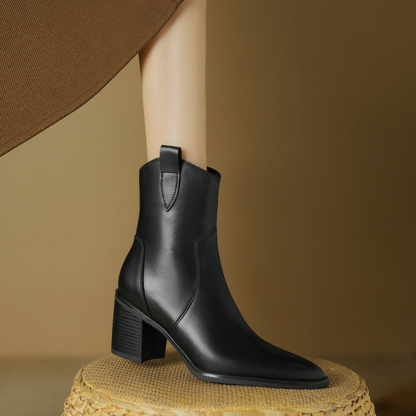 Elevate your wardrobe with Footens Shoes Olga Women's Autumn Ankle Boots. Made with genuine cow leather. these boots are both stylish and durable. The platform and square heel add a touch of high-end fashion. while the zip closure ensures a perfect fit. Perfect for autumn. winter. and spring.