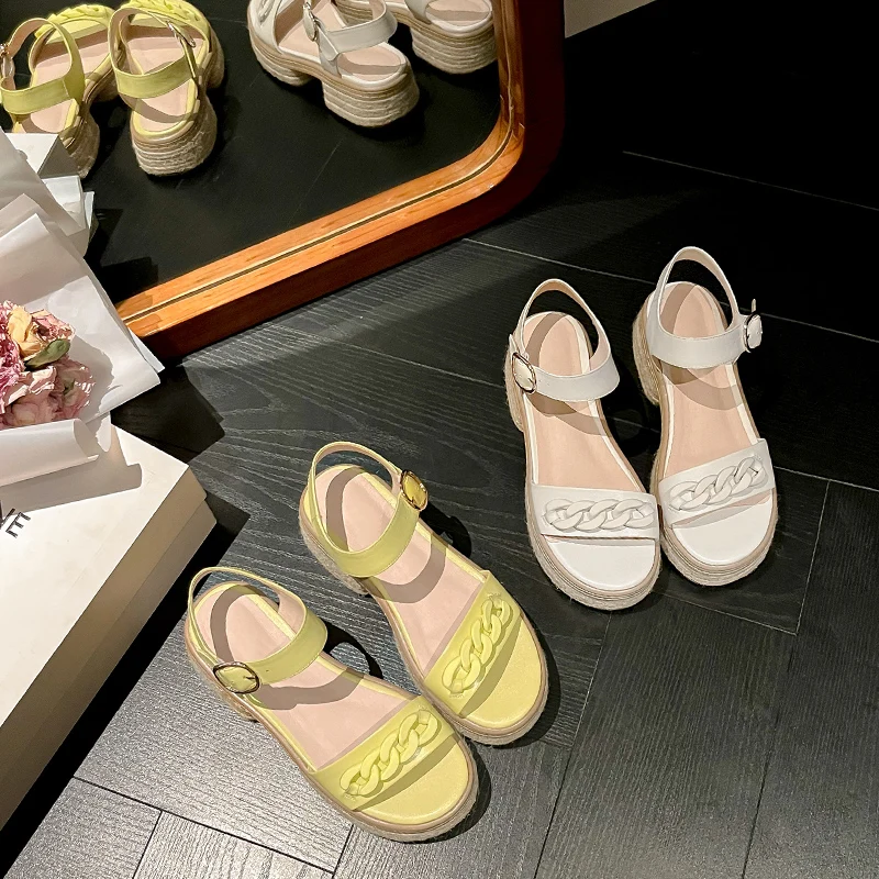 Add a touch of elegance and luxury to your wardrobe with Olga Women's Platform Casual Sandals from Footens Shoes. Crafted from genuine cow leather. these modern sandals feature a front and rear strap with a buckle closure for a secure fit. The polyurethane outsole and microfiber insole provide comfort and style with each step.