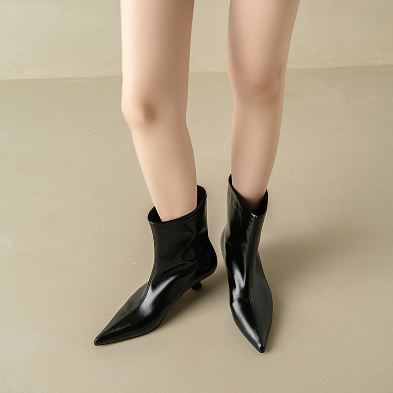 Classic silhouettes never go out of style. that's why we're fans rafted with genuine leather Ornela Women's from Footens Shoes are perfect for the modern. trend-setting woman. The ankle height and slip-on design offer convenience. while the rubber outsole and kitten heel provide durability and style. Made to order. these boots are also environmentally friendly. producing less waste. Get yours now. proudly made in Asia.