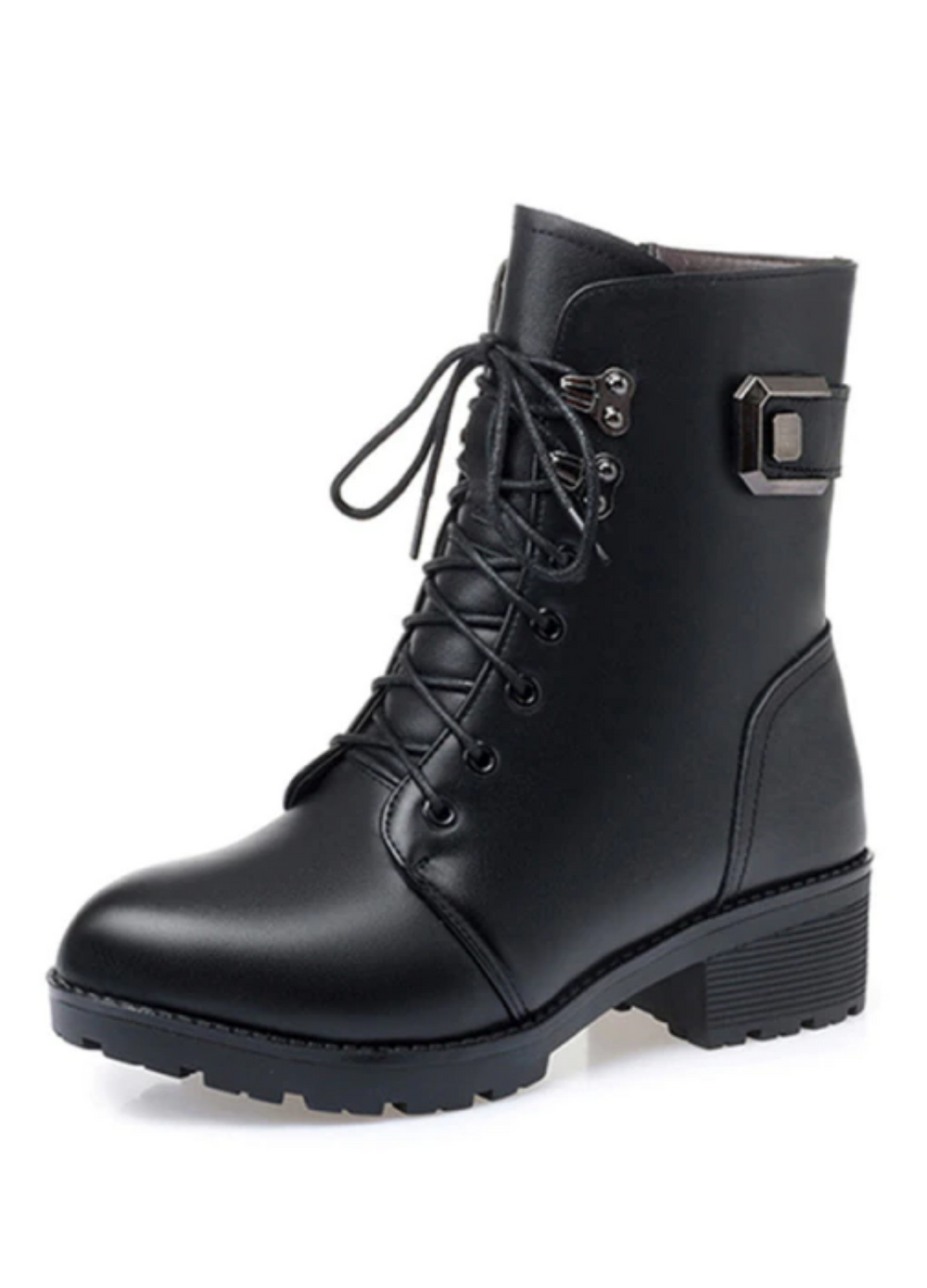 Crafted with genuine leather and lined with cozy wool. these Otty Women's Warm Leather Boots from Footens Shoes will keep your feet stylish and comfortable during the colder seasons. The square heel and round toe provide a fashionable look while the rubber sole offers traction and durability. Stay warm and chic this winter with these motorcycle boots.