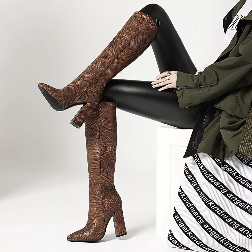 This luxurious high-quality knee high boot is crafted with microfiber shaft material. making it perfect for winter. autumn. and spring. With its pointed toe shape and square 4" heel. these boots are both stylish and comfortable. The slip-on closure ensures a perfect fit for all sizes. Elevate your look with these exclusive Footens Shoes Owen boots.