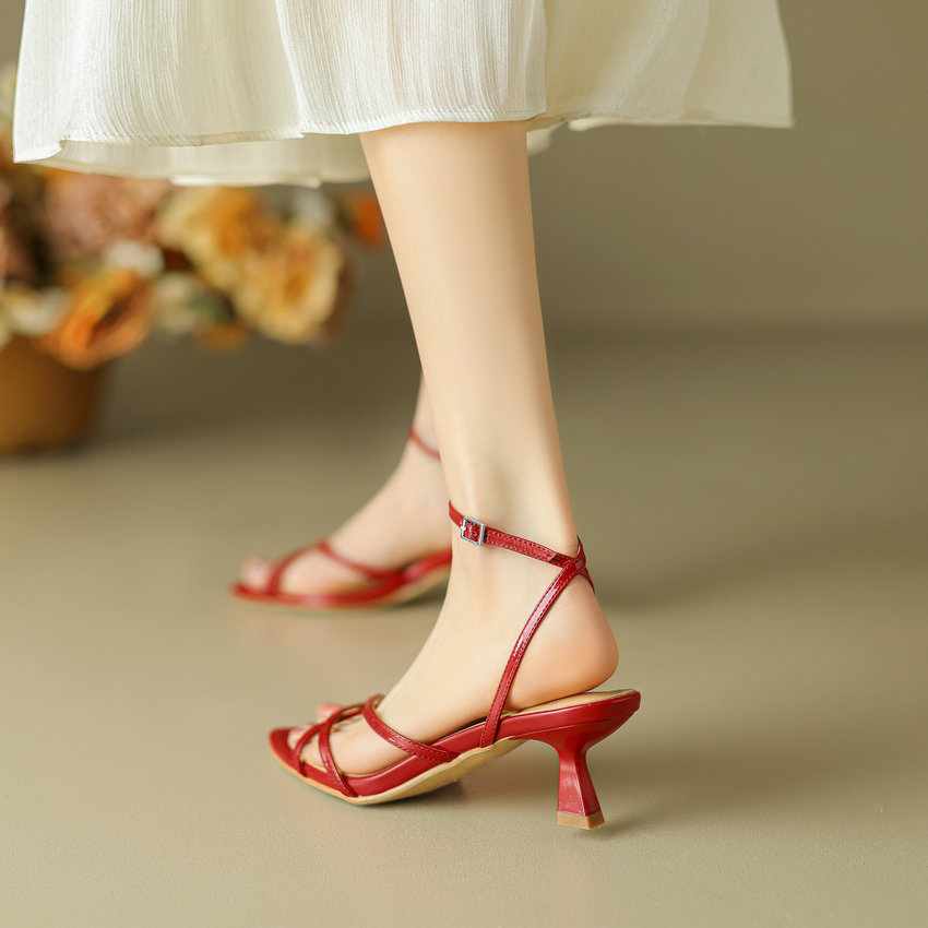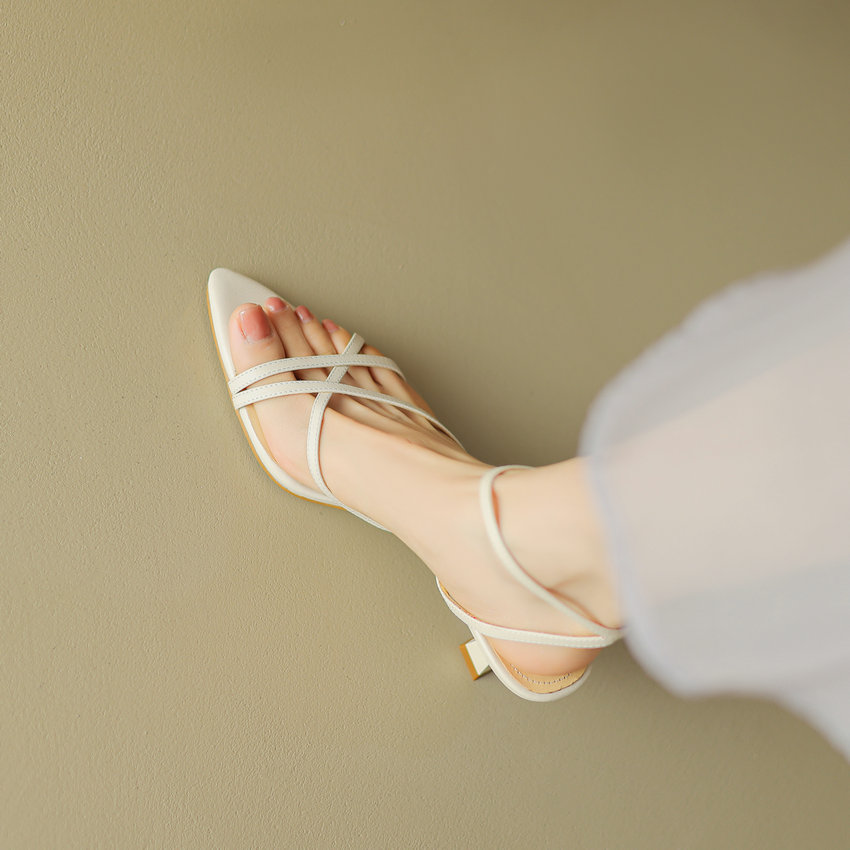 The Footens Shoes Patricia Women's Pointed Toe Sandals are perfect for the office lady. Made with genuine leather lining and a split leather upper. these sandals offer both style and comfort. The buckle strap closure ensures a secure fit. while the shallow fashion element adds a touch of elegance.