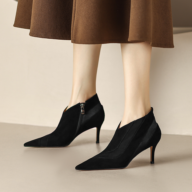 The Paula pumps from Footens Shoes are a simple and classic addition to your footwear collection. This pair features a classic silhouette with a genuine leather upper. detailed stitching. and a sleek pointed toe. Thin heels provide comfort and style. perfect for any occasion. Easy to match with several different outfits thanks to its versatile style.