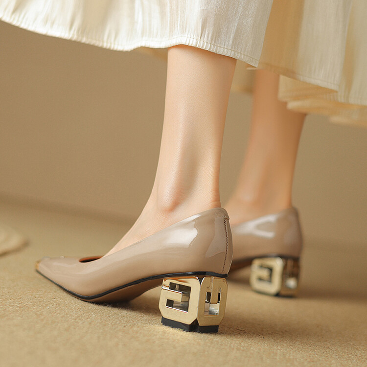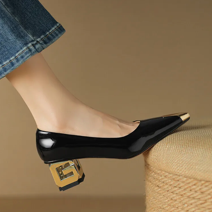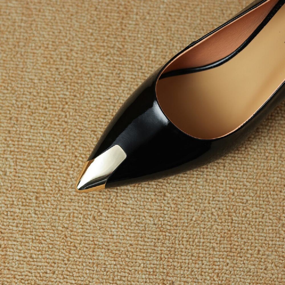 Elevate your style with classic touches from the Rafaela Pumps. where genuine leather graces both exterior and lining for unparalleled luxury. This pair sports a patent shine to catch the eye. the distinctive pointed toe and architectural sculpted heel create a silhouette of timeless sophistication. while the resilient rubber outsole ensures graceful stability. Each pair is thoughtfully crafted to order. embodying our commitment to conscious luxury and minimal waste.