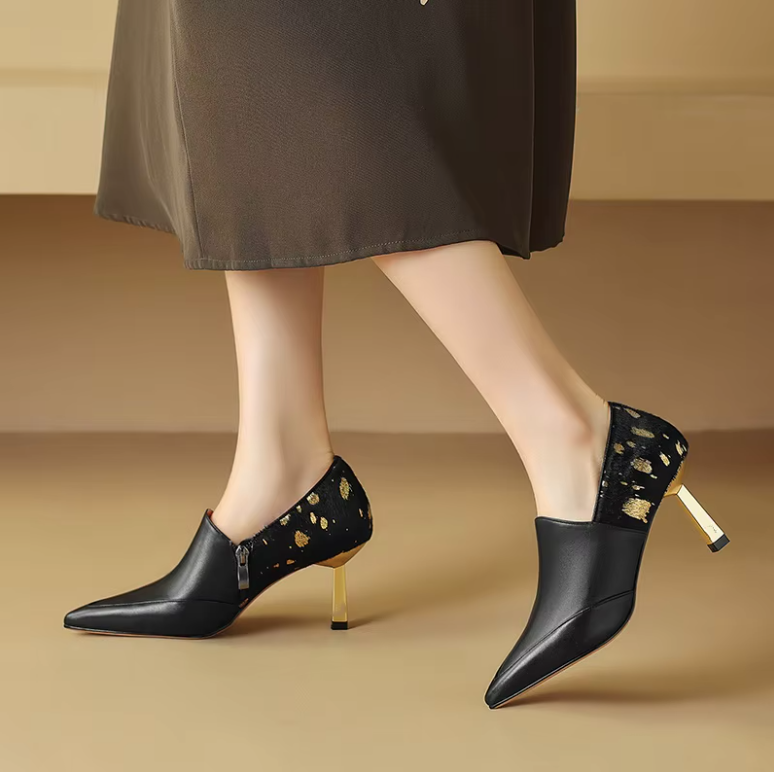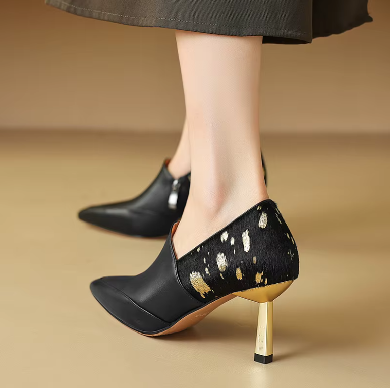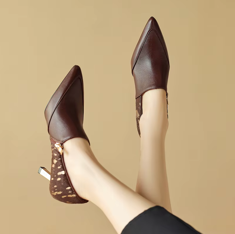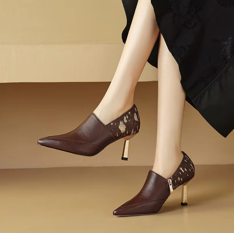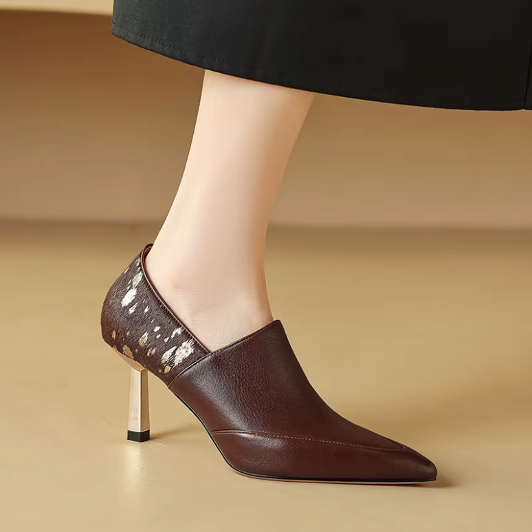Transform your wardrobe with Footens Shoes Raiza Women's Elegant Leather High Heel Pumps. With genuine leather. these pumps exude luxury and sophistication. Featuring a pointed toe and thin 3" heel. they are perfect for any occasion. Made to order with less waste. they also fit true to size. Elevate your style and buy now.