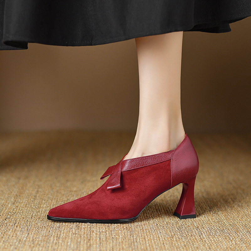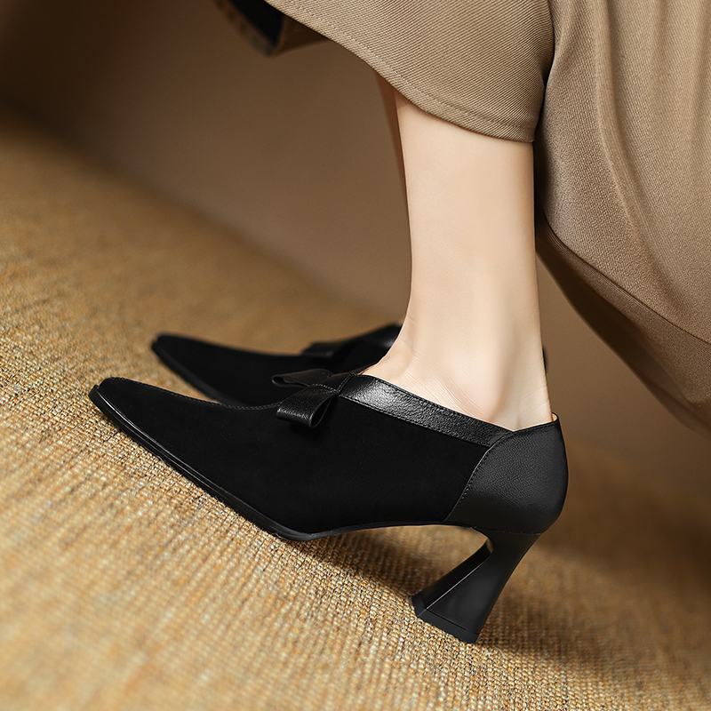 The Footens Shoes Ramira Women's Leather Suede Pumps are crafted from genuine leather. both inside and out. offering a luxurious feel and refined durability. Their elegant pointed toe and 3-inch square heels provide a poised silhouette perfect for autumn and spring. Made to order to reduce waste. they embody a sophisticated blend of timeless design and mindful craftsmanship.